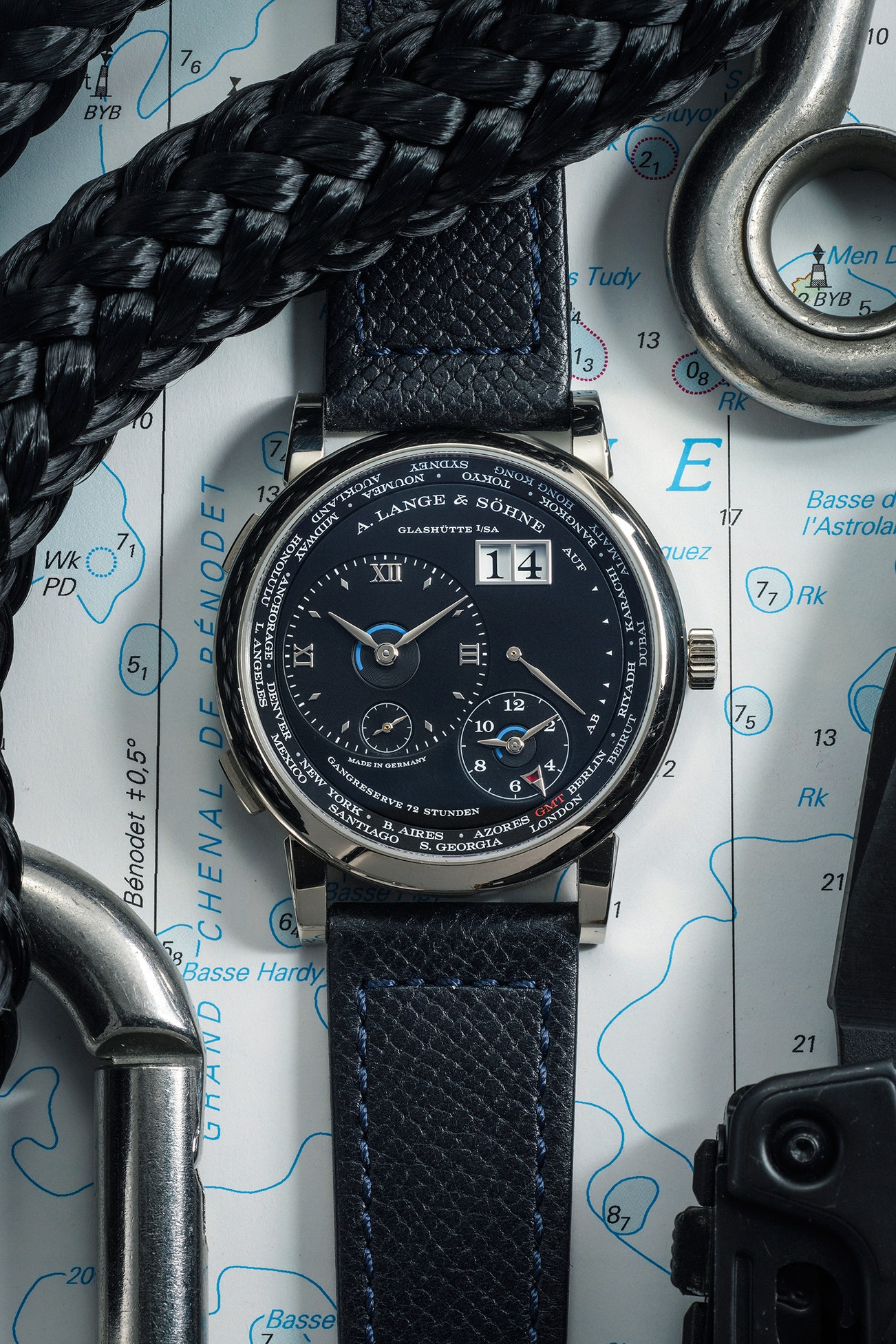 - Fitted with the new in-house manual wind Lange caliber L 141.1 and accompanied by its original set of accessories, the present Lange 1 Time Zone reference 136.029 is further preserved in excellent overall condition.