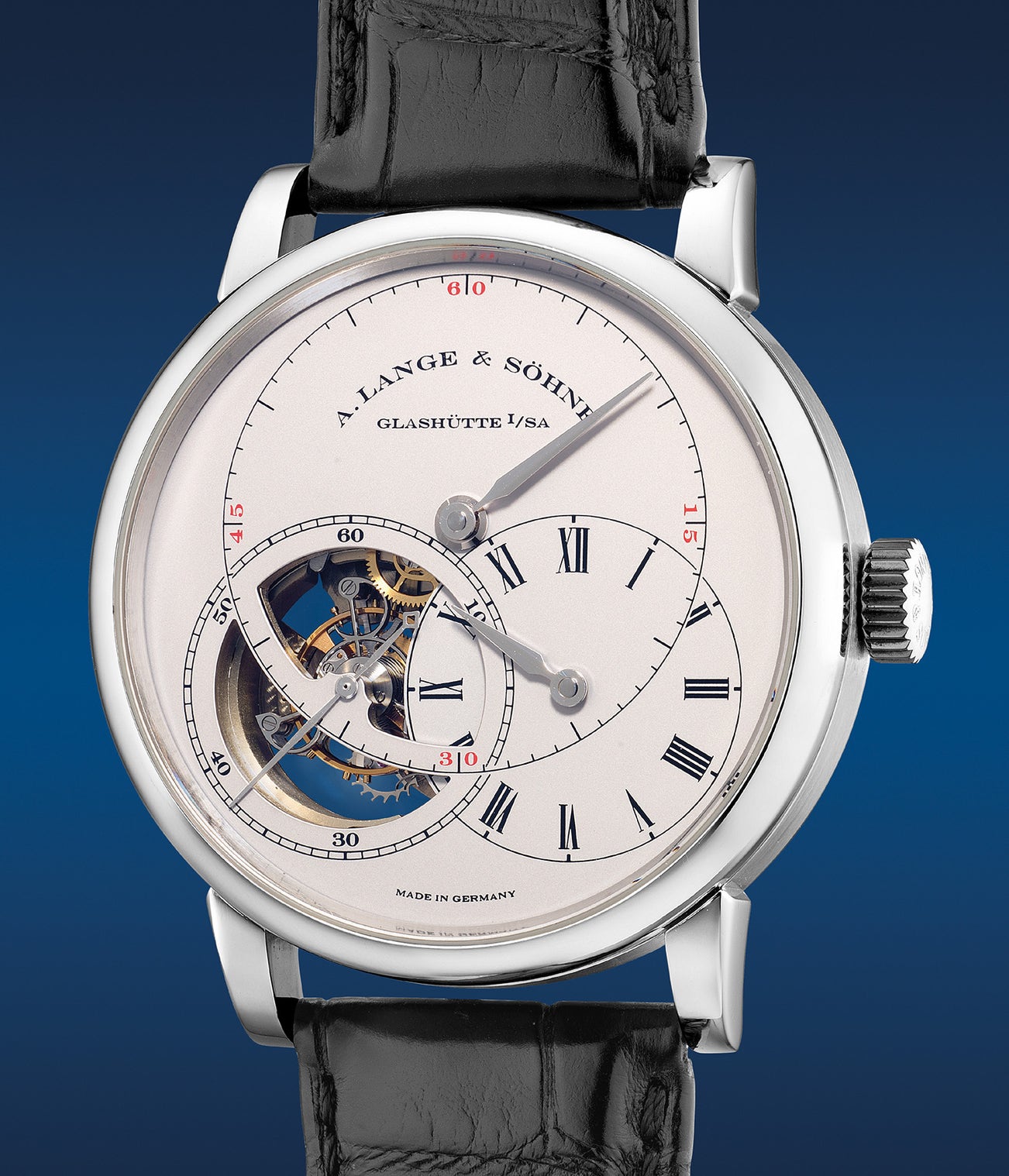 Housed inside the spectacular case reveals the sophisticated in-house cal. L072.1. With 351 individual components assembled to achieve such feat, the meticulous fusée-and-chain transmission alone comprises of 636 parts assembled in the likes of a bicycle chain. With exactly 36 hours from the full winding, which is precisely calculated for the optimal result for accuracy, a locking device blocks the power transmission when the seconds hand hits zero. Thus, the watch ensures the constant torque throughout its power reserve. Finished with uncompromisingly German quality and details such as the signature hand-engraved balance cock, the three-quarter plate of untreated German silver, to the diamond endstone secured in a screwed gold chaton, the watch is an exquisite masterpiece.
