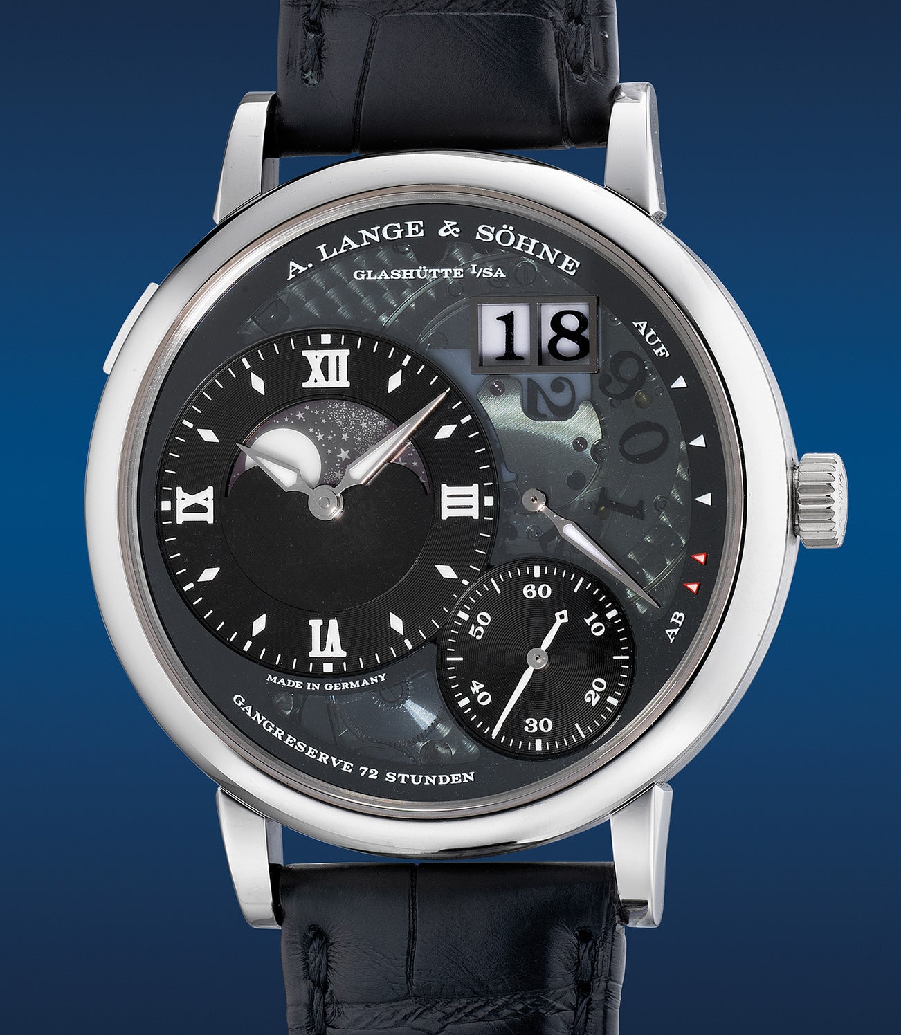 With the ever-growing demand for Lange timepieces in recent times, the present example A. Lange & Söhne Grand Lange 1 Moon Phase Lumen numbered 51 is offered in excellent overall condition complete with its full set of accessories is one to desire for. Worn with care throughout its life time, this crisp example will surely delight collectors seeking for the rare and elusive Lumen series.