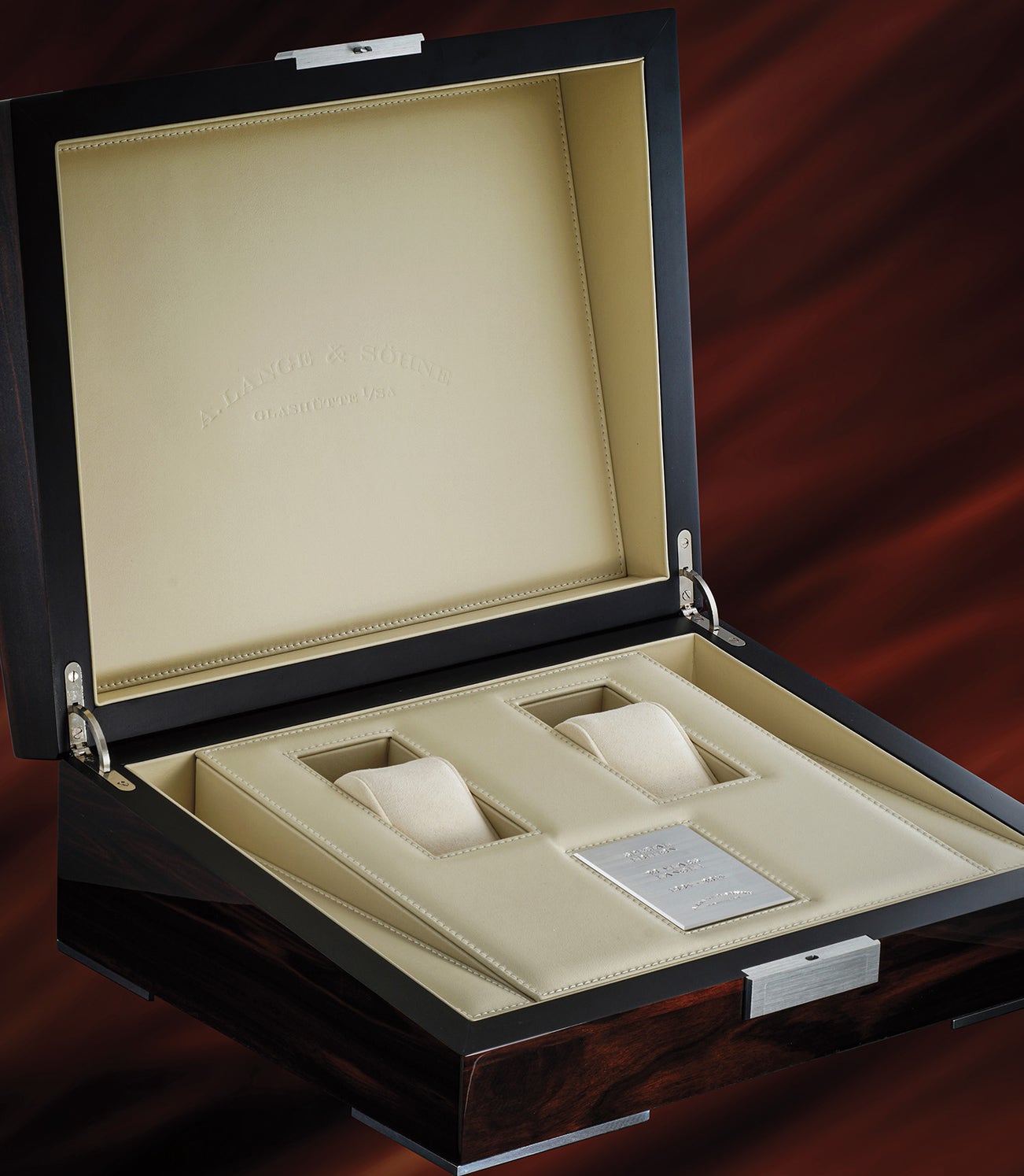 This box is particularly made for the collector who has purchased both timepieces and want to reunited them in a box. So rare is this edition that it marks the very first time that both watches within the same edition (a Lange 1 and Little Lange 1) are available at public auction, along with the special limited edition box.