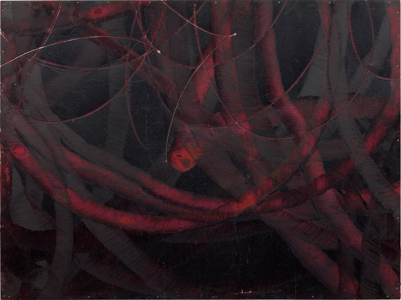 oil, rubber and acrylic on aluminum