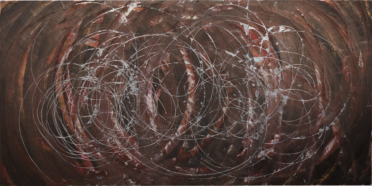 acrylic and burnt rubber on aluminum