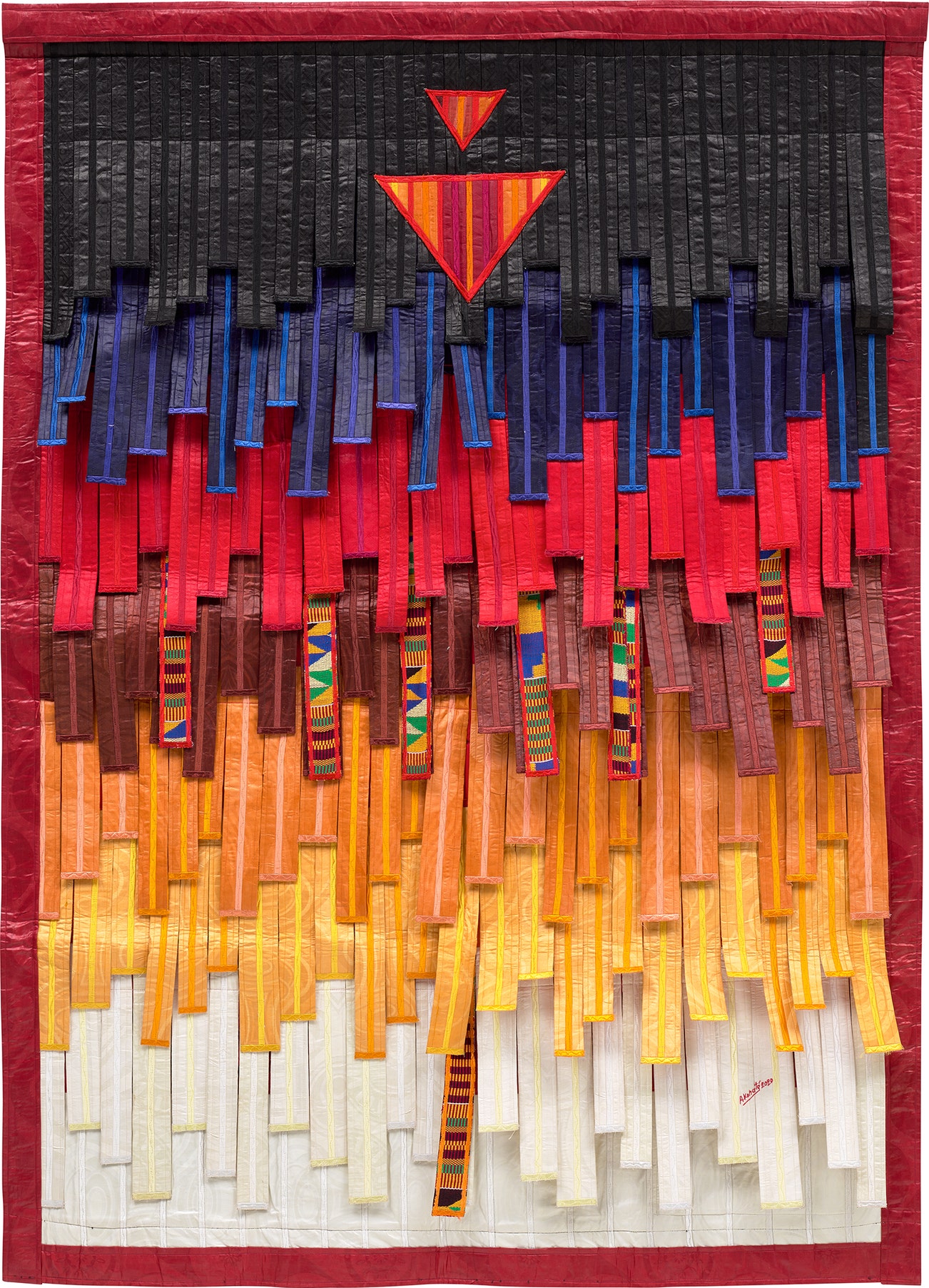 signed and dated 'A. Konaté 2020' lower right; signed, titled and dated 'Ocre et bleu au Kente (2 triangles) 2020 A Konaté Abdoulaye KONATÉ' on an artist label affixed to the reverse