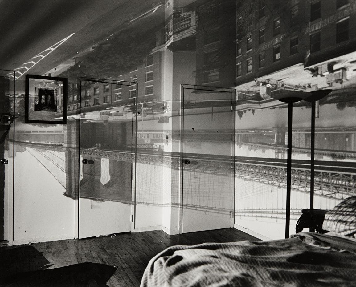 Camera obscura image of the Brooklyn Bridge in bedroom