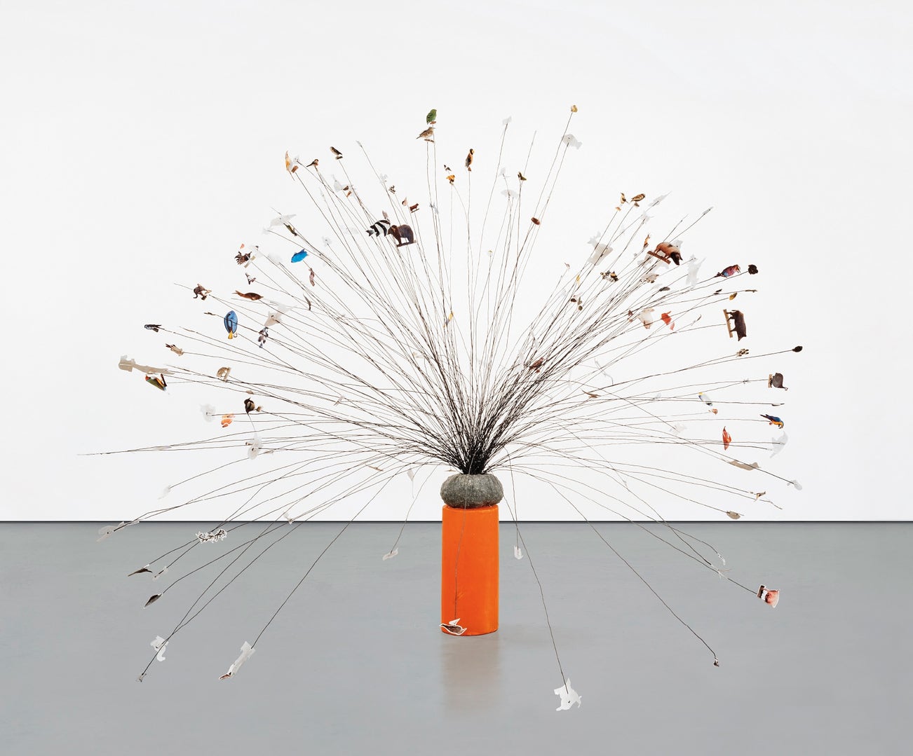 beeswax candle, stuffed cloth ball, iron wire and paper clippings