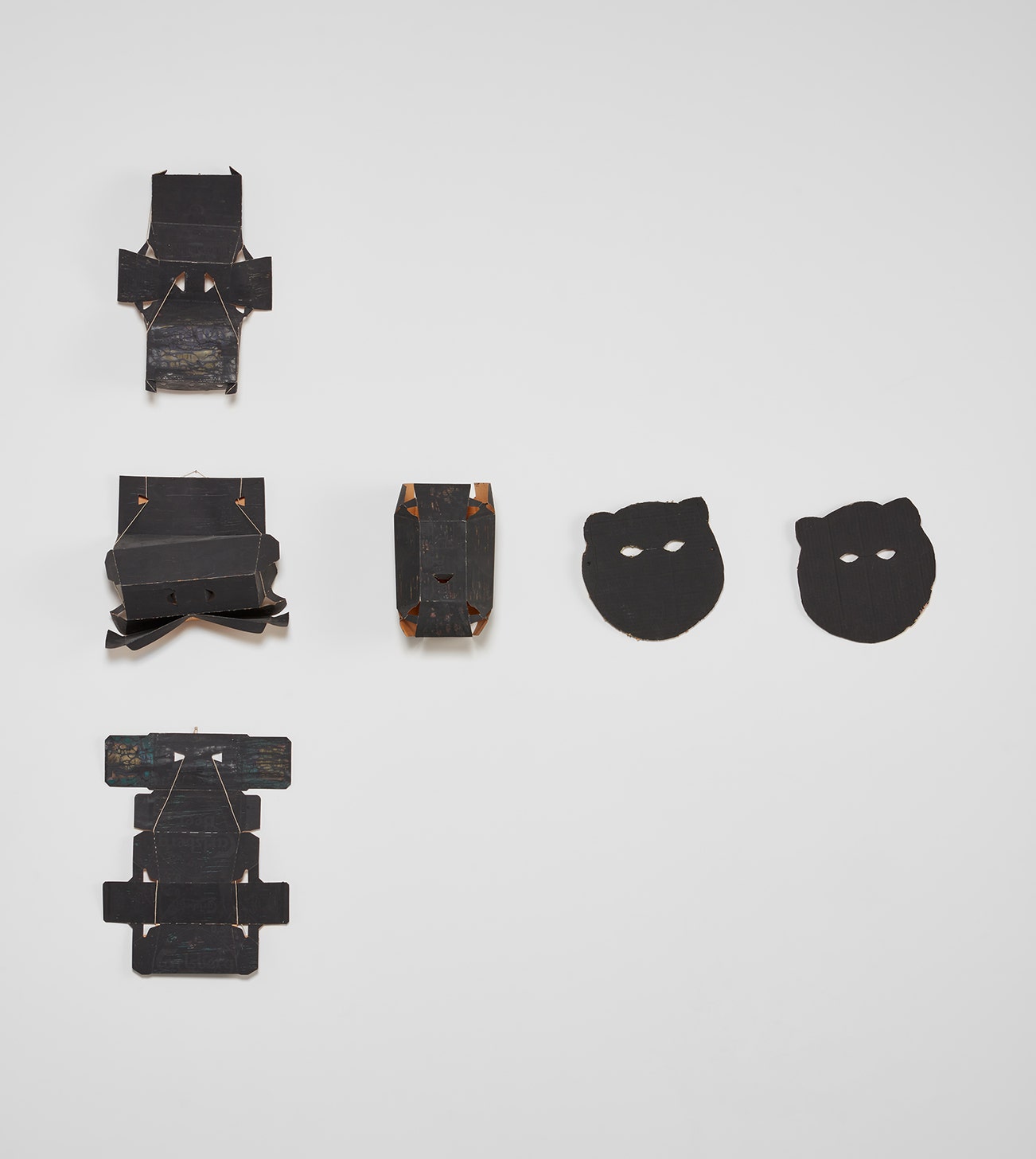 acrylic, hemp cord and nylon on cardboard packing for beer, in 6 parts