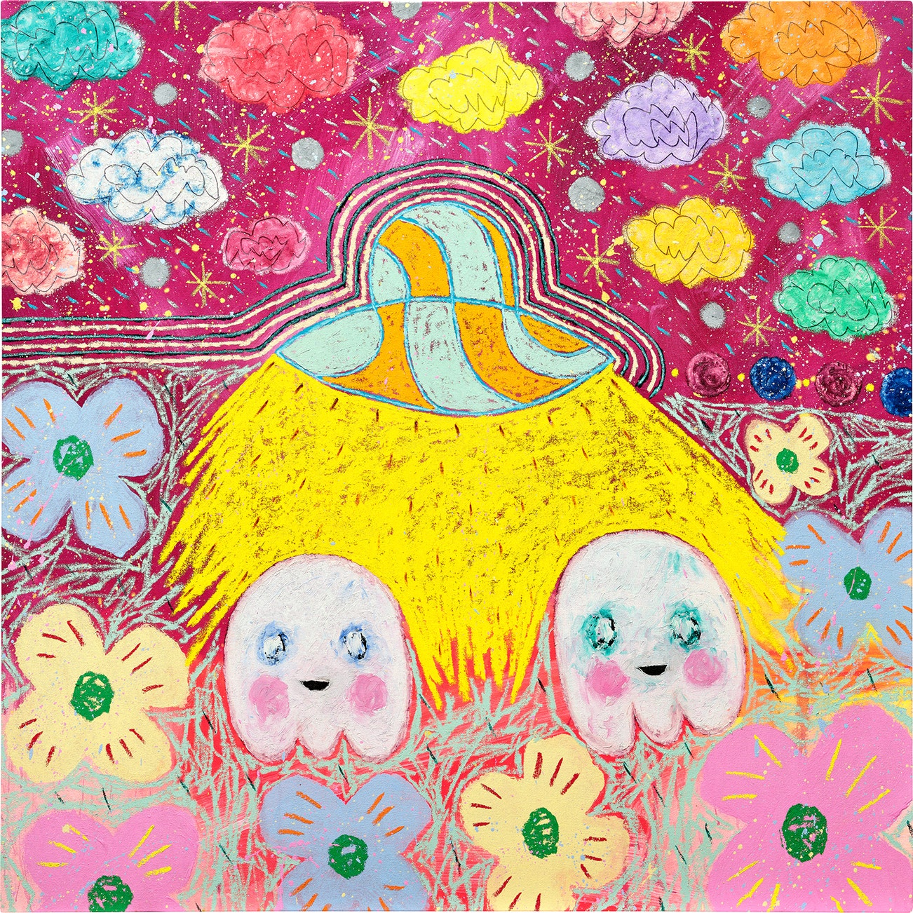 signed, titled and dated 'Adam Handler 2022 "Ghost Buddy Abduction in a Colourful Dream"' on the reverse
