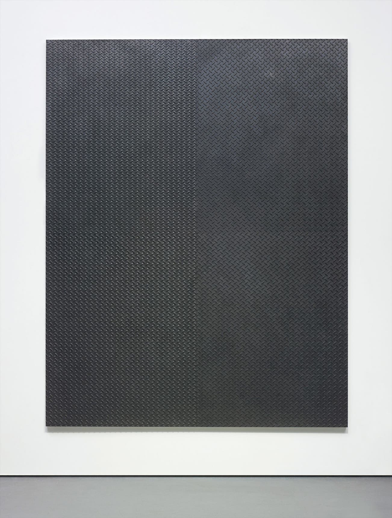 Composed of large pieces of machined graphite fixed onto aluminium panels, the present lot conveys a sense of weightiness whilst still alluding to a certain element of lightness. The reflected rays visible in the silver intersections between slabs alleviate the otherwise highly dense composition and provide the lot with a multi-faceted appeal. This layering effect is emphasised by the raised and varied surface of the lot that is highly evocative and palpable: tempting and inviting touch. The tactility of Bigelow highlights the importance of medium and its effect on perception and reaction.