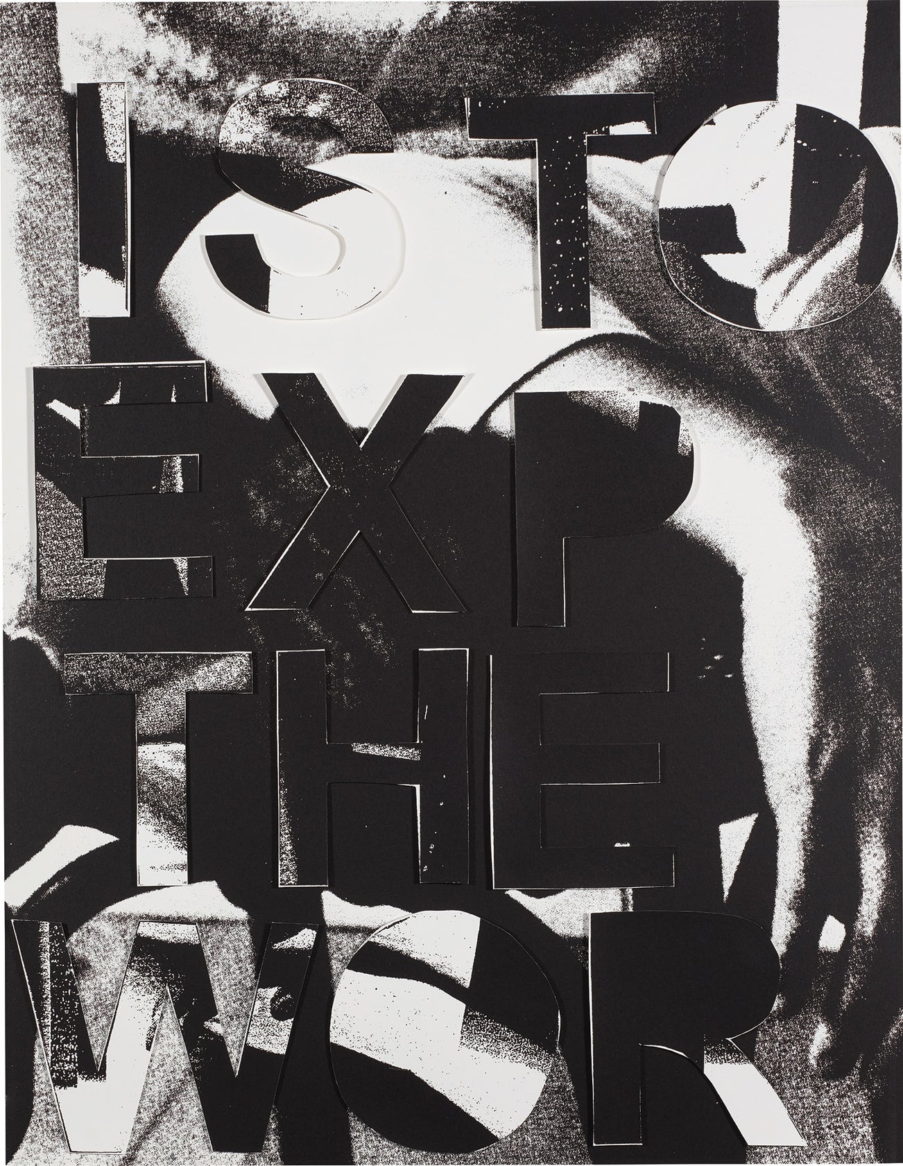 Screenprint with hand-applied screenprint letters (slightly raised from the sheet as issued), on 4-ply Museum board, the full sheet.