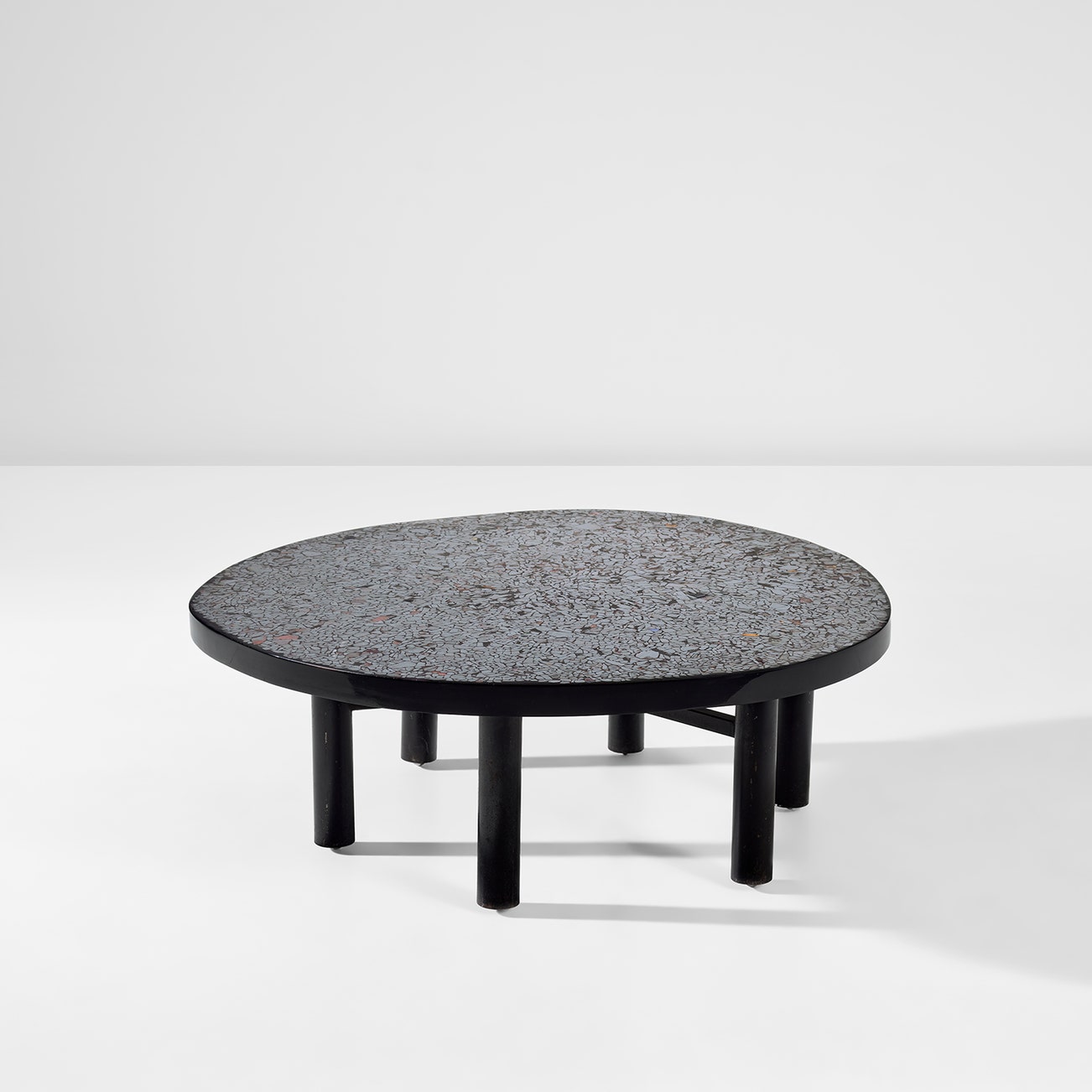 Produced by Atelier Ado Chale, Brussels, Belgium. Side of tabletop inlaid Chale.