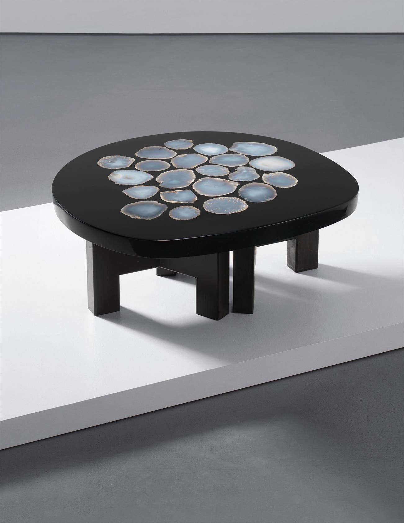 Resin and agate calcedoine brute, painted metal.