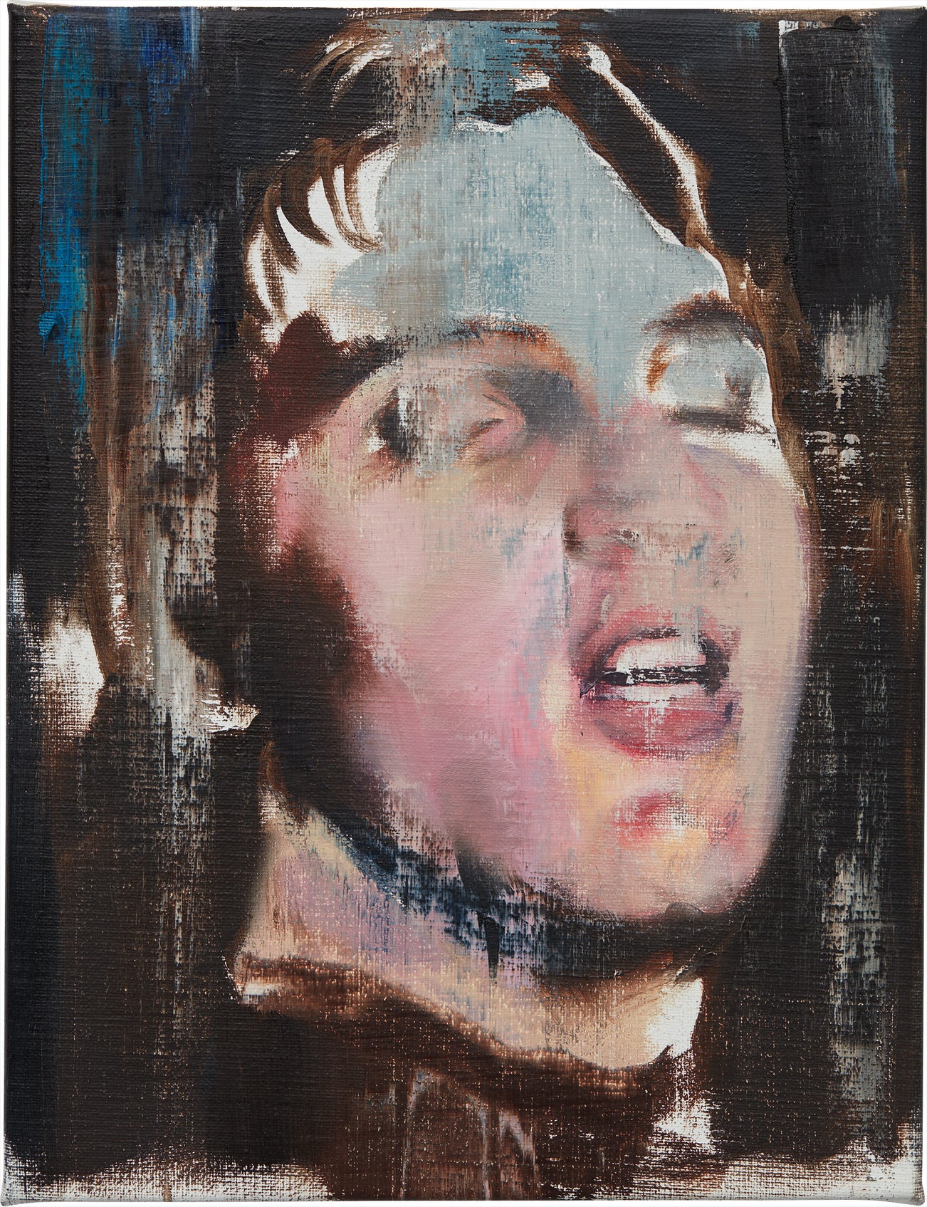 Continuing Ghenie’s exploration of the relative nature of myth and image-making in a media-saturated society, Elvis confronts us with a complex psychological portrait that explores how public and private ambiguously intertwine. While the figure of Elvis functions as a universal symbol for fame, it also harbors personal undercurrents for Ghenie as his father had been an Elvis impersonator. This series marked the beginning of Ghenie’s ongoing interest in self-portraiture, as made most explicit in Selfportrait, 2009, where the artist posed as Elvis for the full-length portrait. By injecting a representation of himself into depictions of iconic personalities, Ghenie essentially defines “that the origin of all [his] work is the consequence of a specific context and biography, but at the same it gives it the universal span beyond the anecdote of any biographical detail” (Philippe van Cauteren, Adrian Ghenie: Darwin’s Room, exh. cat., Romanian Pavilion, Biennale de Venezia, 2015, p. 91).