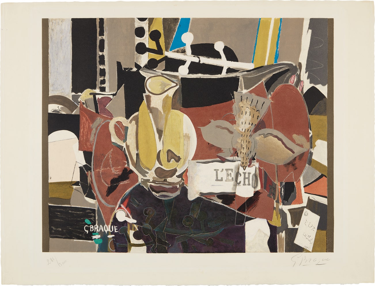 Based on the painting of the same title and completed between 1949 and 1956 for an exhibition at Galerie Maeght. L'Echo is a vignette from Braque's studio in Varengeville on the Normandy coast.