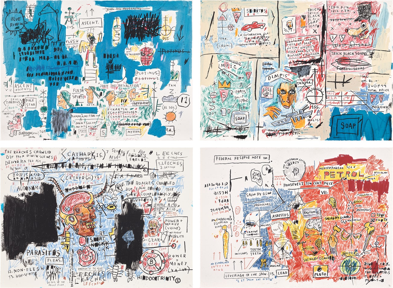 All numbered 13/50 in pencil (there were also 20 artist's proofs), all signed and dated '12/7/17' by Lisane Basquiat and Jeanine Heriveaux (Administrators of the Estate of Jean-Michel Basquiat) in pencil with the Estate stamp on the reverse, published by Flatiron Editions, New York, all unframed.