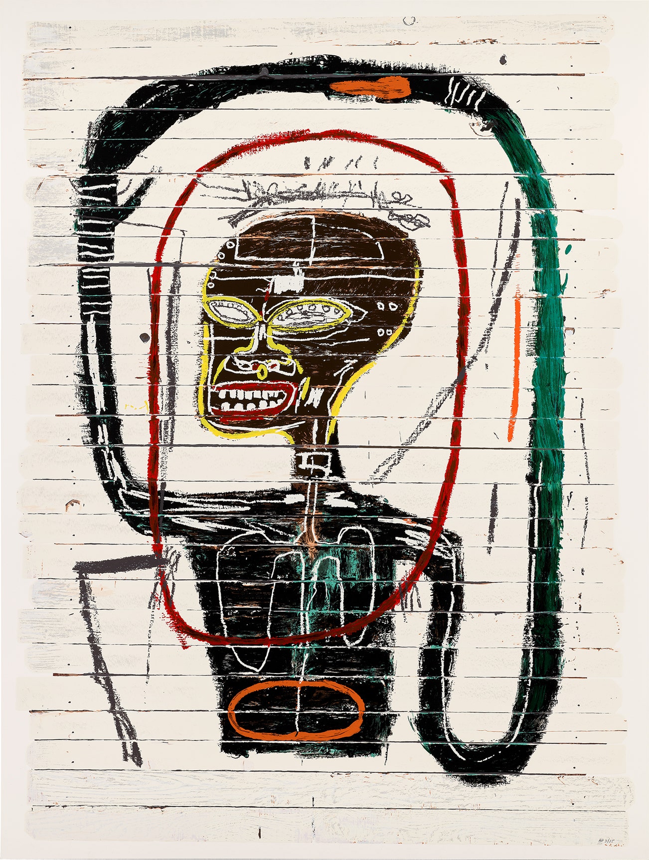 Numbered 'AP 9/15' in pencil on the front (an artist's proof, the edition was 85), signed and dated '5/13/16' by Lisane Basquiat and Jeanine Heriveaux in pencil (The artist's sisters and administrators of the Estate of Jean-Michel Basquiat) on a Certificate of Authenticity affixed to the reverse, published by Flatiron Editions, New York, framed.