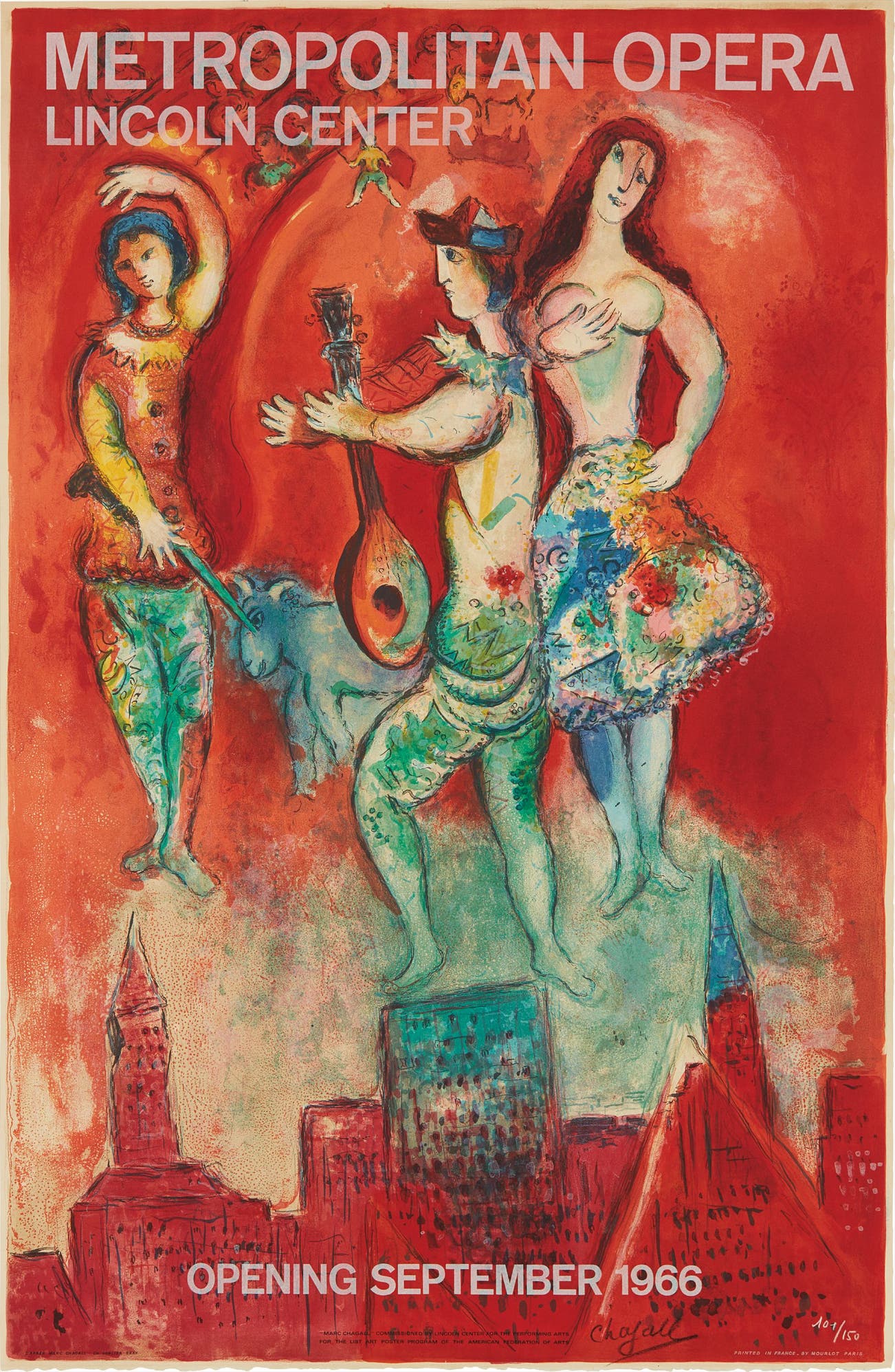 Signed in black crayon and numbered 101/150 in white crayon (there was also an edition of 200 without text and a poster edition of 3,000), published by the Metropolitan Opera, New York, framed.