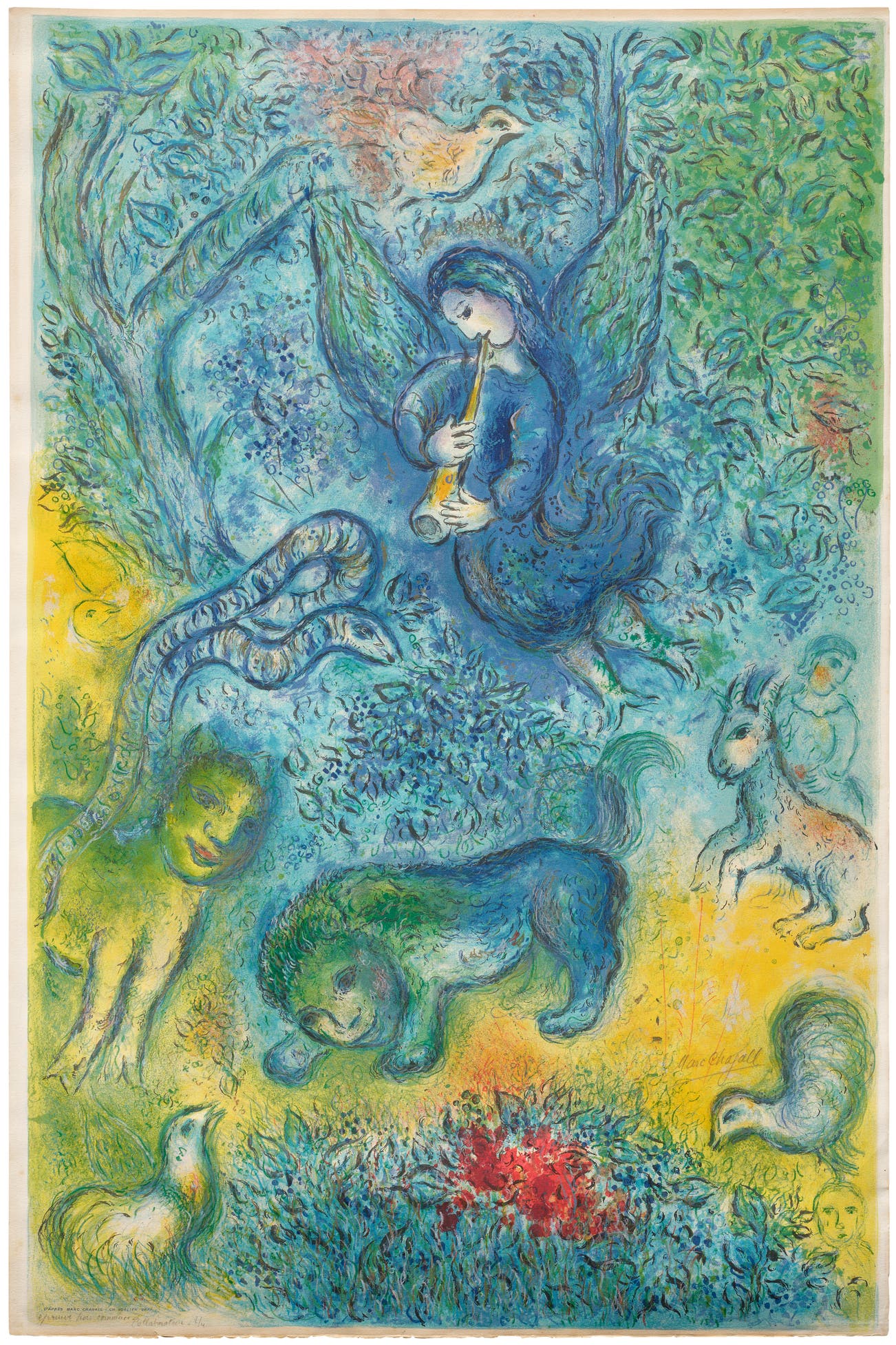 Signed and annotated 'epreuve hors commerce Collaborateur 2/4' in pencil (a proof, the edition was 200 signed and numbered and 100 with text, there was also poster edition of 3000 with text), printed 'D’après Marc Chagall – CH. Sorlier Grav.' lower left, printed by Mourlot, Paris, published the Metropolitan Opera, New York, framed.