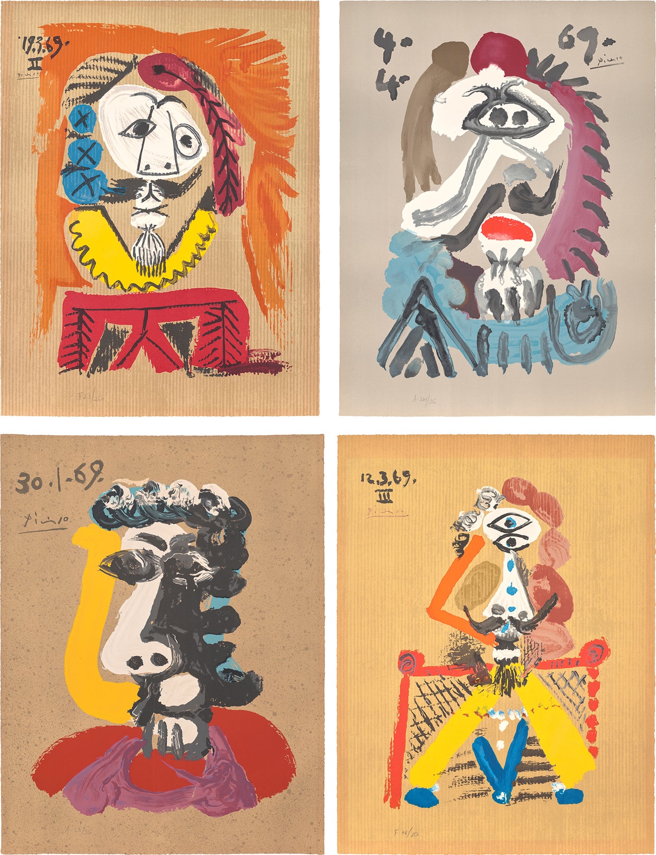 Four offset lithographs in colours, on Arches paper, the full sheets.