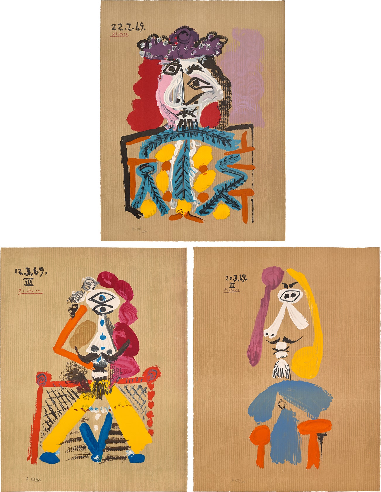 Three offset lithographs in colours, on Arches paper, the full sheets loose (as issued), with colophon and the accompanying original beige corduroy-covered portfolio box.