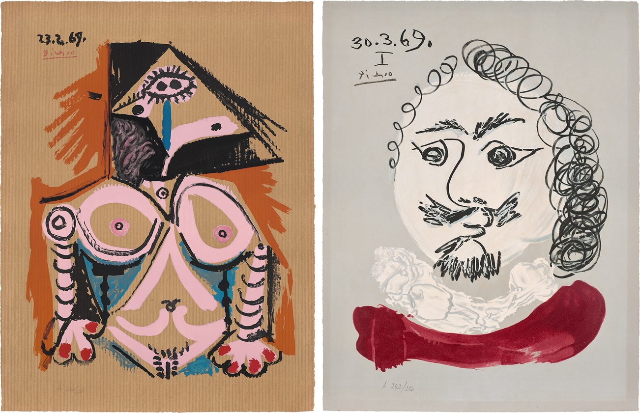 Two offset lithographs in colours, on Arches paper, the full sheets.