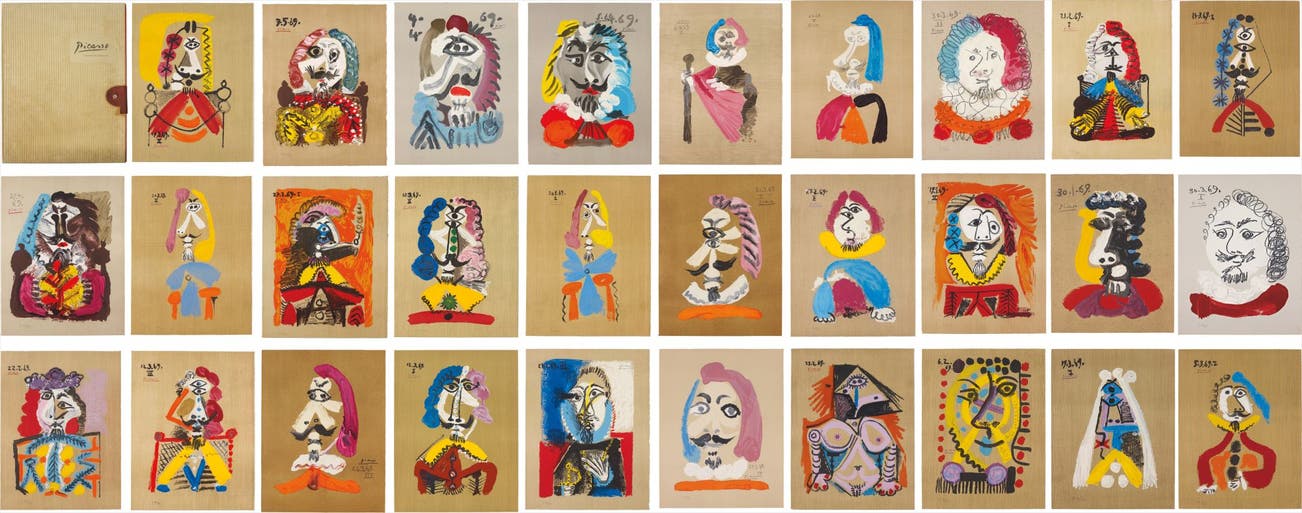 each numbered 'A 119/250', from the American edition of 250 (there was also a French edition of 250, marked 'F'), 19 of 29 sheets with the printer's blindstamp (Marcel Salinas), published by Harry N. Abrams, New York, contained in the original orange cloth and tan corduroy-covered box with a leather clasp, lacking the title page and colophon.