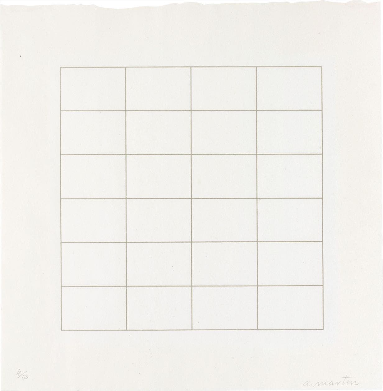 American | B. 1912 D. 2004As an artist defined by minimalism and abstract expressionism, Agnes Martin found serenity in her work. Commonly believed to have schizophrenia, Martin may have exercised her orderly grids and pastel colors as a way to find peace. After moving from Canada to New York City and earning her M.A. at Columbia University, she was supported by other talented artists such as Ellsworth Kelly and Robert Indiana. Martin began her career with exhibitions at Betty Parson's Gallery, and her work quickly traveled internationally from there. Eventually moving to New Mexico, the artist ended her career and cut off all social ties. Martin was represented by Pace Gallery from 1975 and was recently given a retrospective at Tate Modern in 2015.