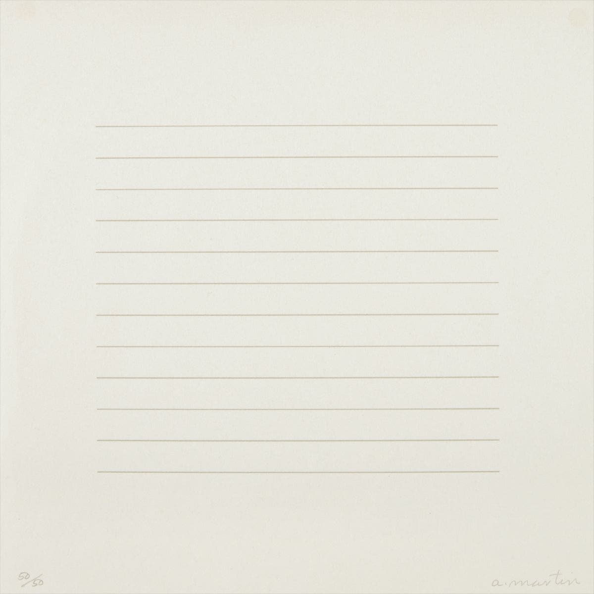 American | B. 1912 D. 2004As an artist defined by minimalism and abstract expressionism, Agnes Martin found serenity in her work. Commonly believed to have schizophrenia, Martin may have exercised her orderly grids and pastel colors as a way to find peace. After moving from Canada to New York City and earning her M.A. at Columbia University, she was supported by other talented artists such as Ellsworth Kelly and Robert Indiana. Martin began her career with exhibitions at Betty Parson's Gallery, and her work quickly traveled internationally from there. Eventually moving to New Mexico, the artist ended her career and cut off all social ties. Martin was represented by Pace Gallery from 1975 and was recently given a retrospective at Tate Modern in 2015.