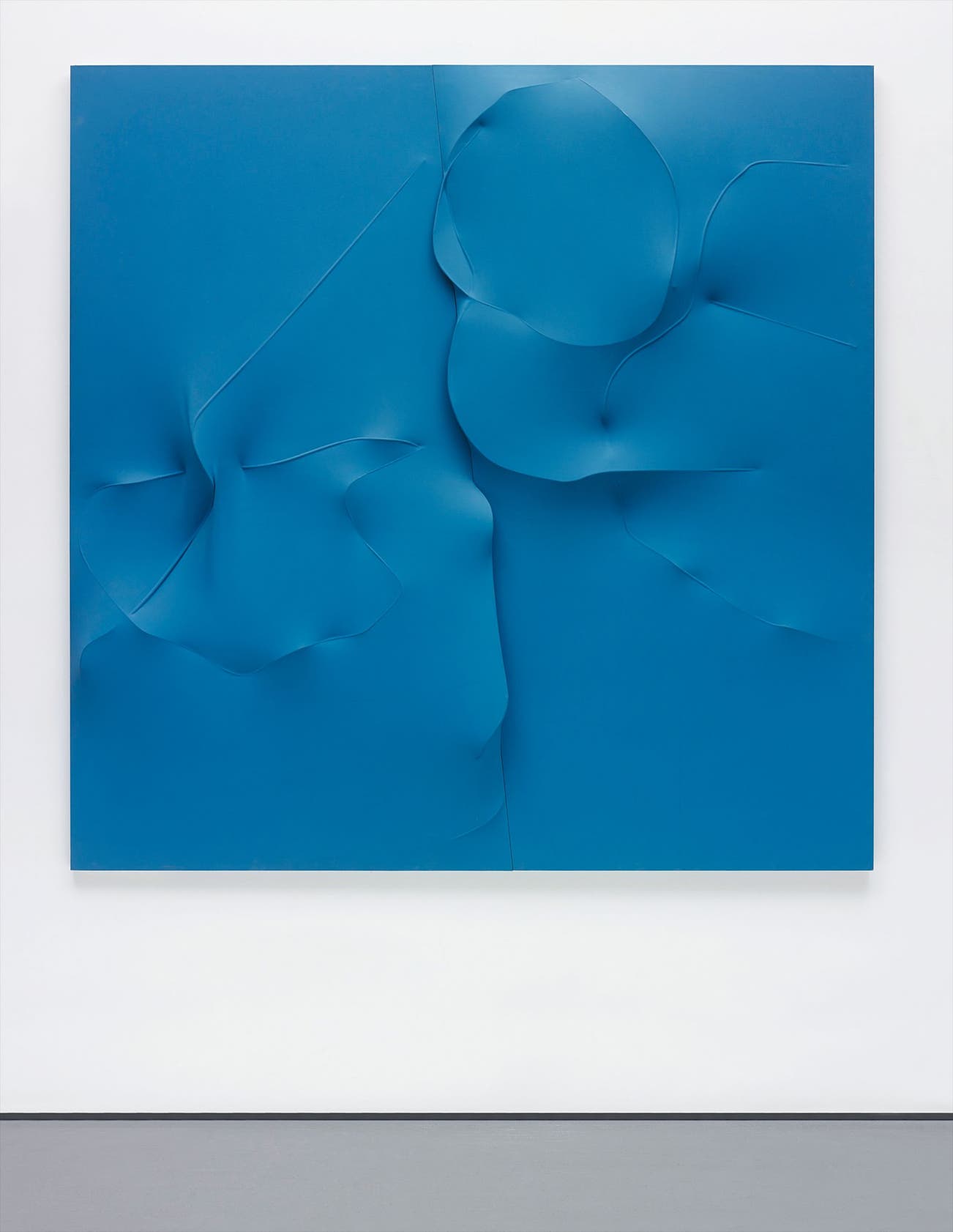 Signed, titled and dated 'Bonalumi 97', 'AGOSTINO BONALUMI=AZZURRO=1997=' on the stretcher. Further annotated with exhibition history as listed below.