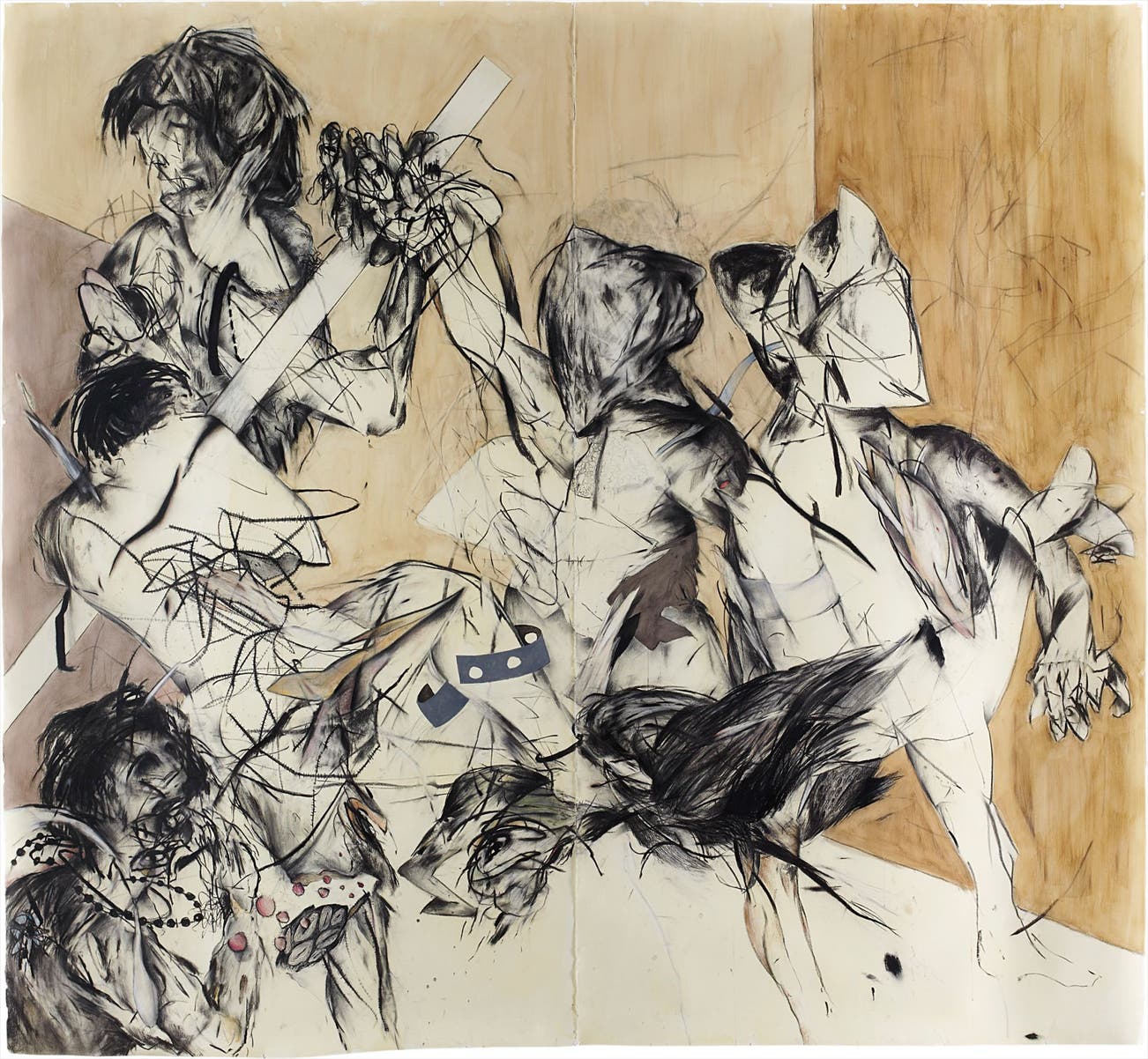 charcoal, pastel, gouache, graphite and acrylic on paper