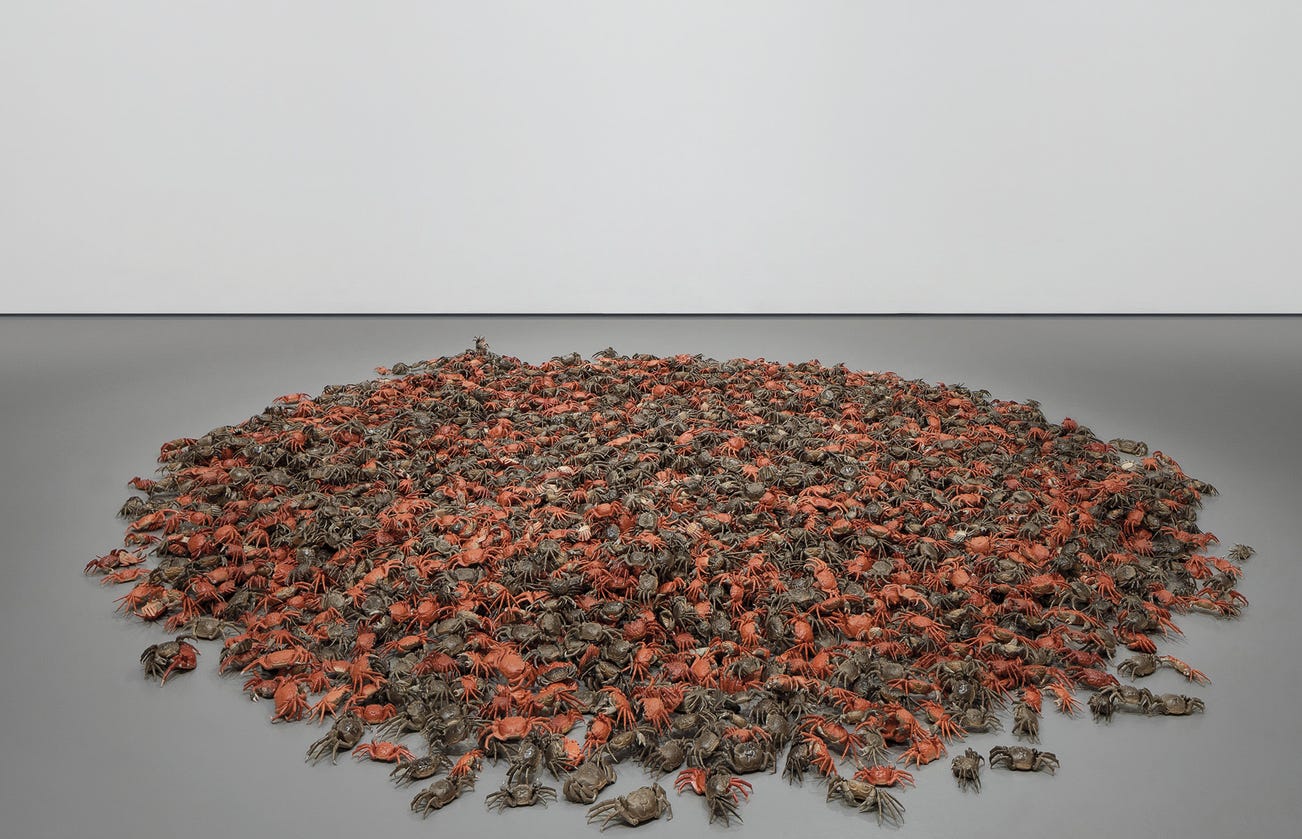 Ai Weiwei’s He Xie, 2010, presents the viewer with 2,300 porcelain crabs, piled on one another and scattered on foreign ground. Usually nestled in corners of gallery spaces or placed centre stage in vacant museum rooms, the installation’s lifeless crustaceans are as though removed from their traditional habitat and thrown into an artificial spotlight, unsuspectedly becoming prey to any passing visitor’s scrutiny. While this random display of static figurines in artistic contexts may seem harmless and even humorous at first, one may easily infer, upon further reflection, the installation’s daunting political implications. In other words, and as often with Ai Weiwei’s works, apparent simplicity betrays plural meaning, while seemingly gentle surfaces readily uncover thorny foundations.