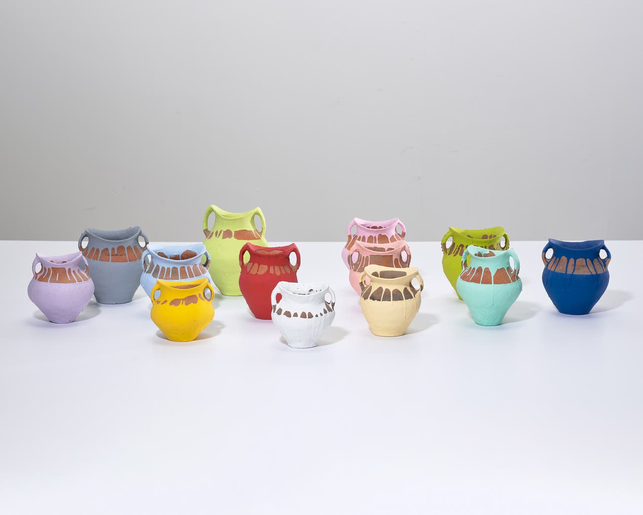 industrial paint on Neolithic vases, in 13 parts