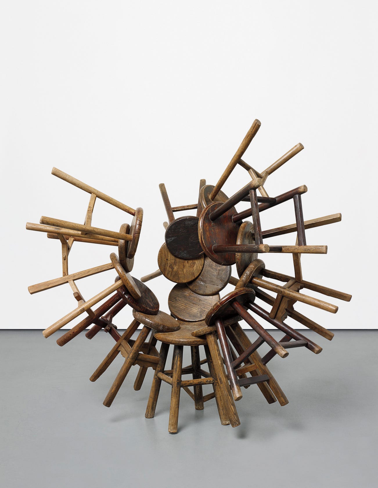 Discussing the present lot, Ai relates that ‘these stools are commonly used household furniture with hundreds of years of history in China. This symbol is present in every household. I wanted to find how to take this symbol and reassemble it completely, but using the original logic so that it remains true to its original form. This is something that I’ve been interested in trying for a long time, including the earlier furniture series.’ (Ai Weiwei in conversation with Michael Frahm,' Ai Weiwei at Blenheim Palace, Woodstock: Blenheim Art Foundation, 2015). The seventeen stools of which Grapes is comprised become components of a larger design. Their original structure is not destroyed, but rather repurposed in service of another larger and altogether less functional structure.