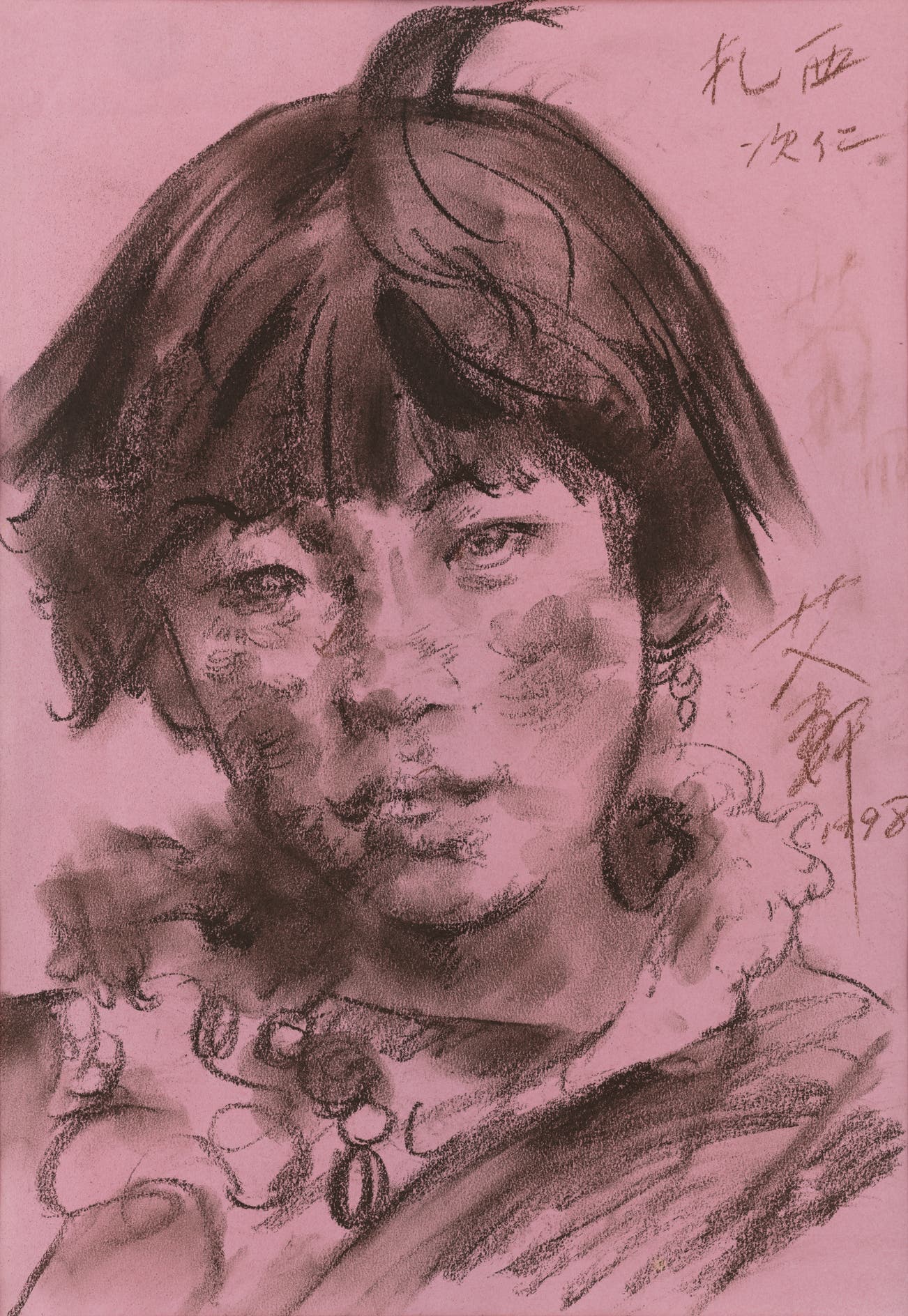 titled '"Tashi Tsering"' upper right and signed and dated 'Ai Xuan 1998' centre right