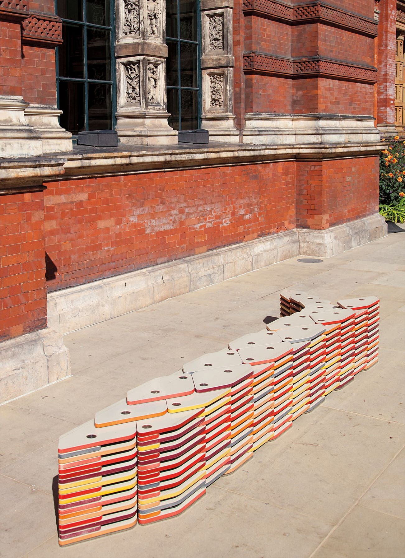 Unique 'Bench of Plates' bench, for 'Bench Years', commissioned by the London Design Festival