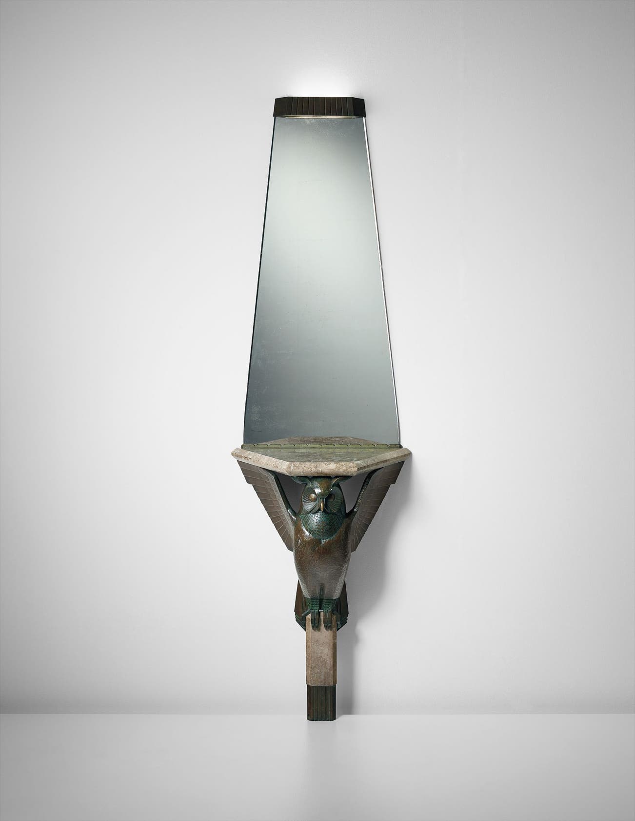 Rare 'Hibou' wall-mounted console with illuminated mirror
