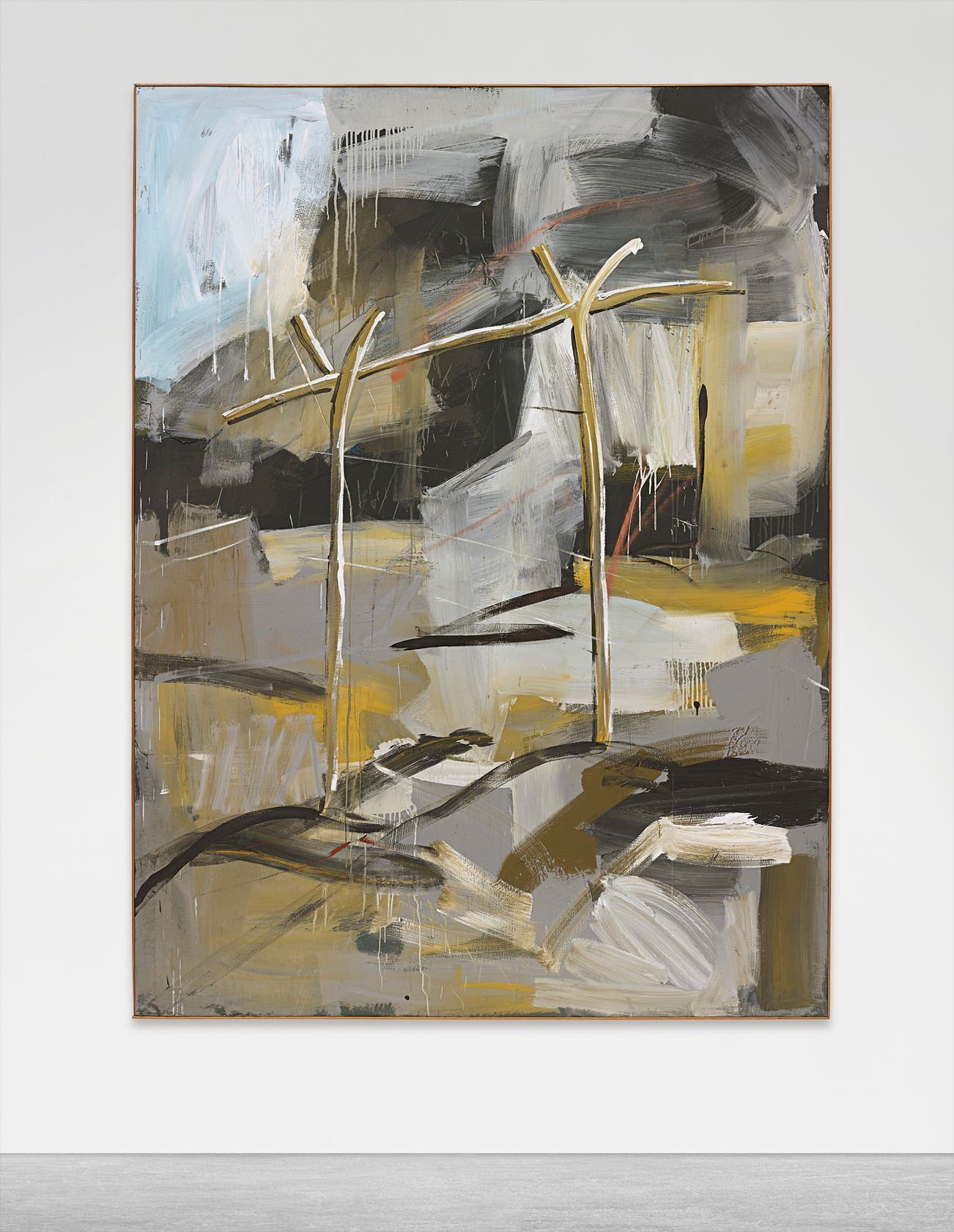 Modernism, of course, has always had artists who deployed strategies of negation. Recall poet and thinker Antonin Artaud’s cry for “no more masterpieces,” or artist Marcel Duchamp great offense to institutionalized bourgeois notions of “true” art through his inverted urinal, Fountain (1917). Even fashion has endured such critiques through, for instance, the ever-irreverent punk movement’s embrace of all things low and in the spirit of an anti-establishment ideology. Muschel 2 can therefore be seen as the artist’s critique of the conservative, humanist values represented by the long history of painting. Oehlen’s overturning of painting’s conventions is also the artist’s way of testing the medium’s resilience and limits—a courageous questioning of painting that reflects its indefinite position vis-a-vis the growing dominance of other art forms, such as video, performance, and even internet art.