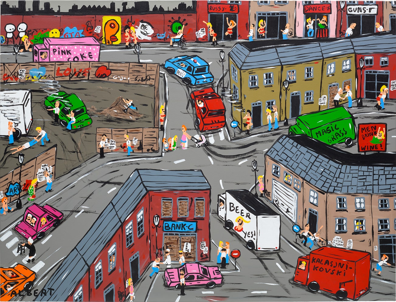 signed 'ALBERT' lower left; signed, titled and dated 'ALBERT WILLEM 2020 Albert Willem "GRANDPA COMPLETES HIS BUCKETLIST (VISITING SOME OLD FRIENDS)" on the reverse