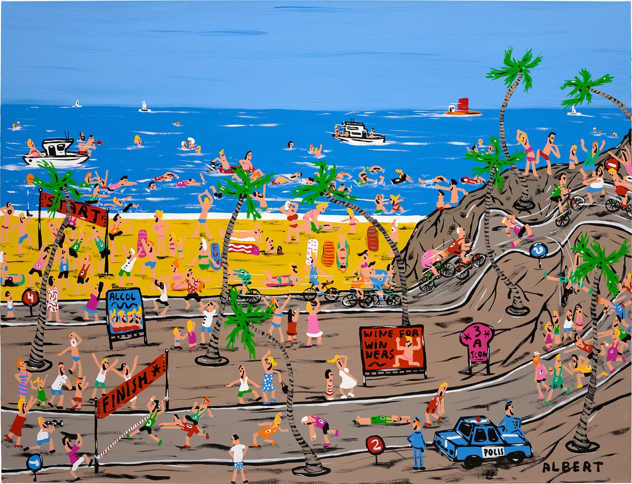 signed 'ALBERT' lower right; signed, titled and dated '"A THRILLING TRIATHLON" 2022 ALBERT WILLEM Albert Willem' on the reverse