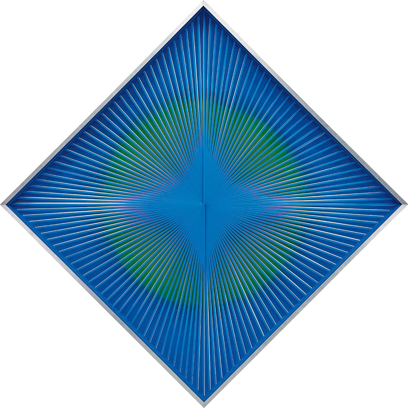ribbon strips on painted wooden board, in artist's aluminium frame
