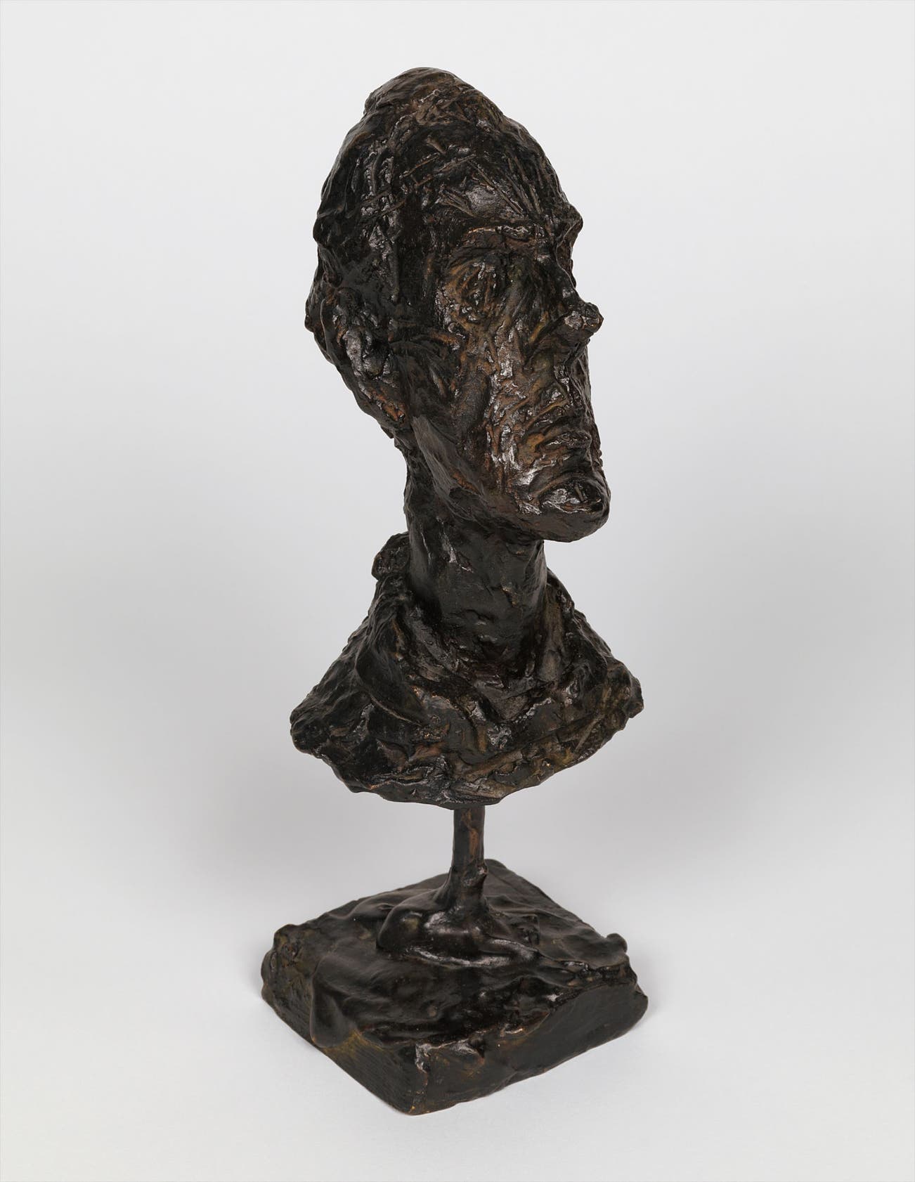 Alberto Giacometti created the plaster for the present lot around 1954, modeling the head on his brother, Diego. Here, his younger sibling appears in a turtleneck sweater rolled down on his neck, his distinctively tall forehead, slightly upturned nose, full lips, and intent gaze creating both a sharp profile and powerful frontal visage. Though the depiction of a head is common artistic subject, for Giacometti it functioned as a crucible for innovation, often heralding a new mode of representation in his production. The formal presence of these works is strikingly powerful, especially the series of male heads and busts that the artist created during the 1950s, which have been declared “as famous as they are beautiful,” by Yves Bonnefoy. “These sculpted faces compel one to face them as if one were speaking to the person, meeting his eyes.” (Alberto Giacometti: A Biography of his Work, Paris, 1991, p. 432)