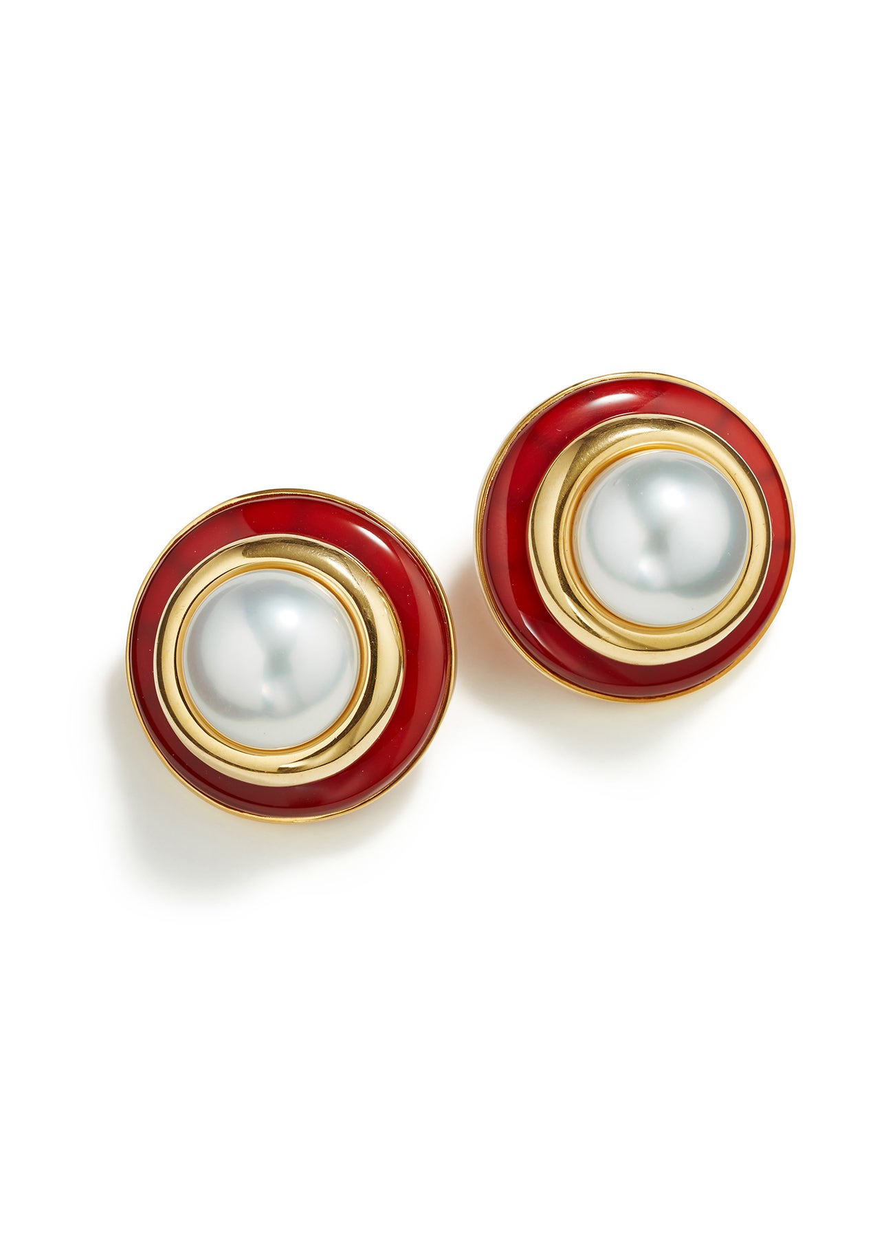A Pair of Cultured Pearl, Carnelian and Gold Earrings