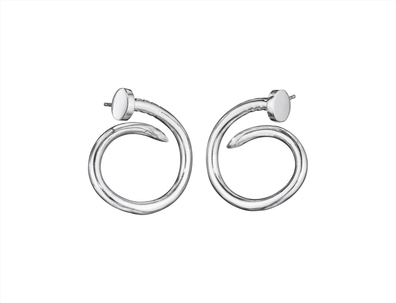 Each designed as a hinged crossover nail, mounted in 18K white gold, length 1 1/8 inches.