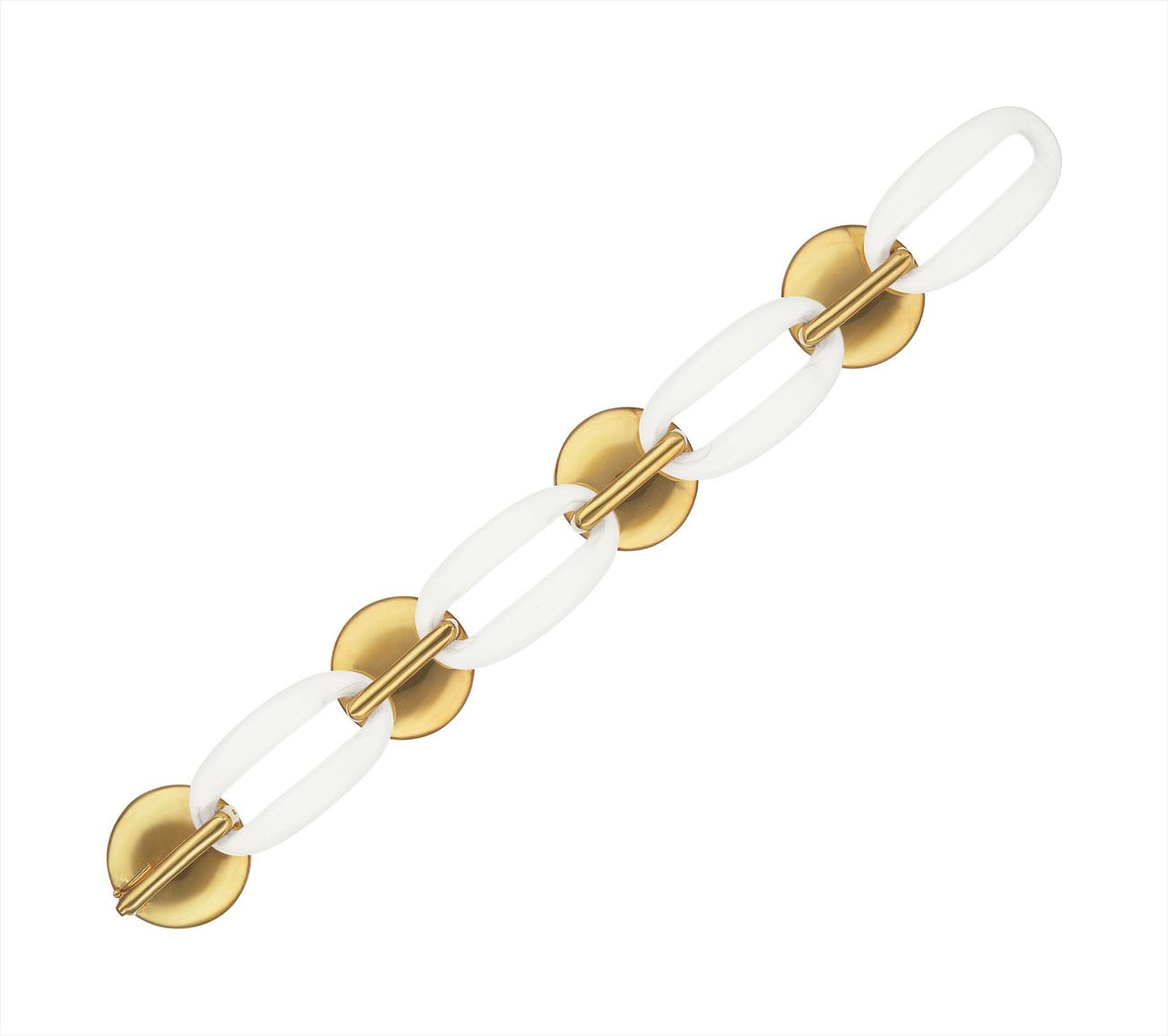 Designed as a line of white coral links joined by circular polished gold plaques, mounted in 18K yellow gold, length 9 inches.