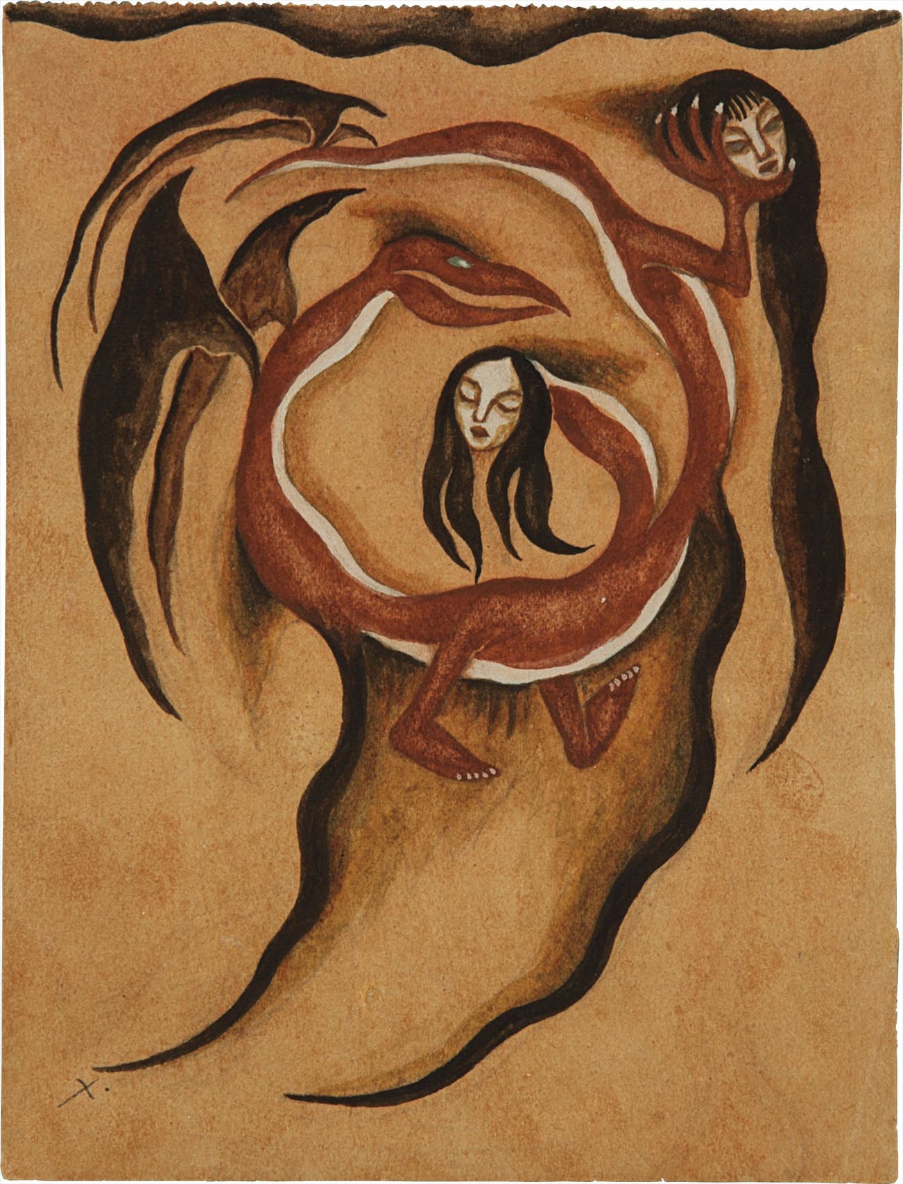Initialed "X." lower left. This work is accompanied by a certificate of authenticity issued by Fundación Pan Klub- Museo Xul Solar.