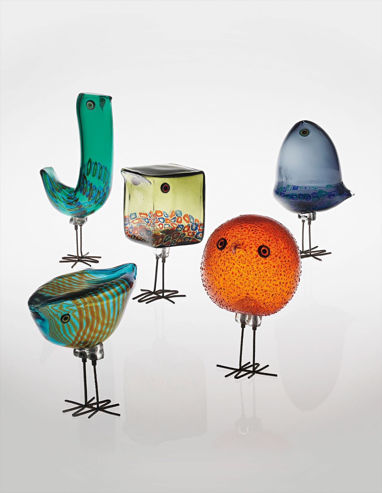 Hand-blown and formed murrine glass, coloured and clear glass, copper.