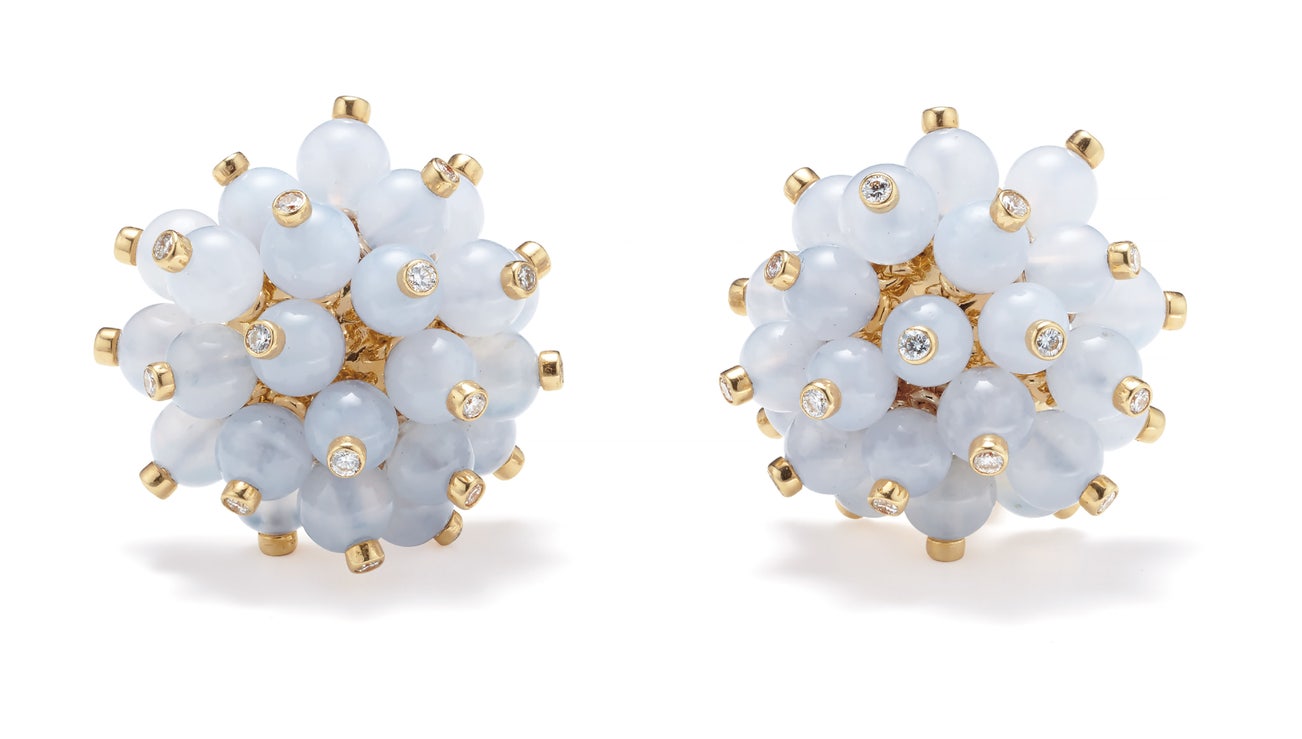 A Pair of Chalcedony, Diamond and Gold Earrings