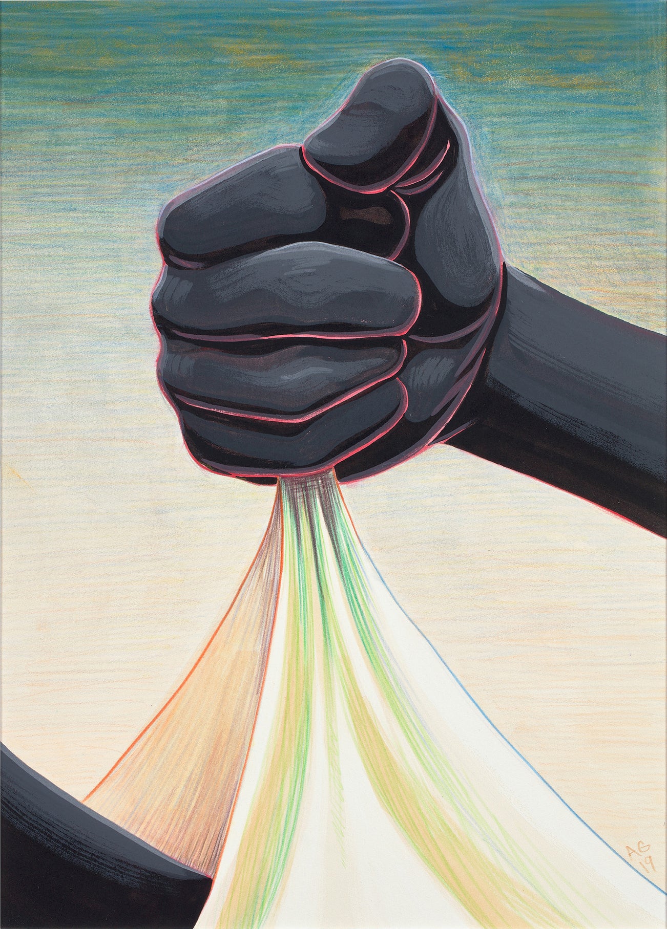 signed with the artist's initials and dated "AG 19" lower right and titled "HANGER" lower center