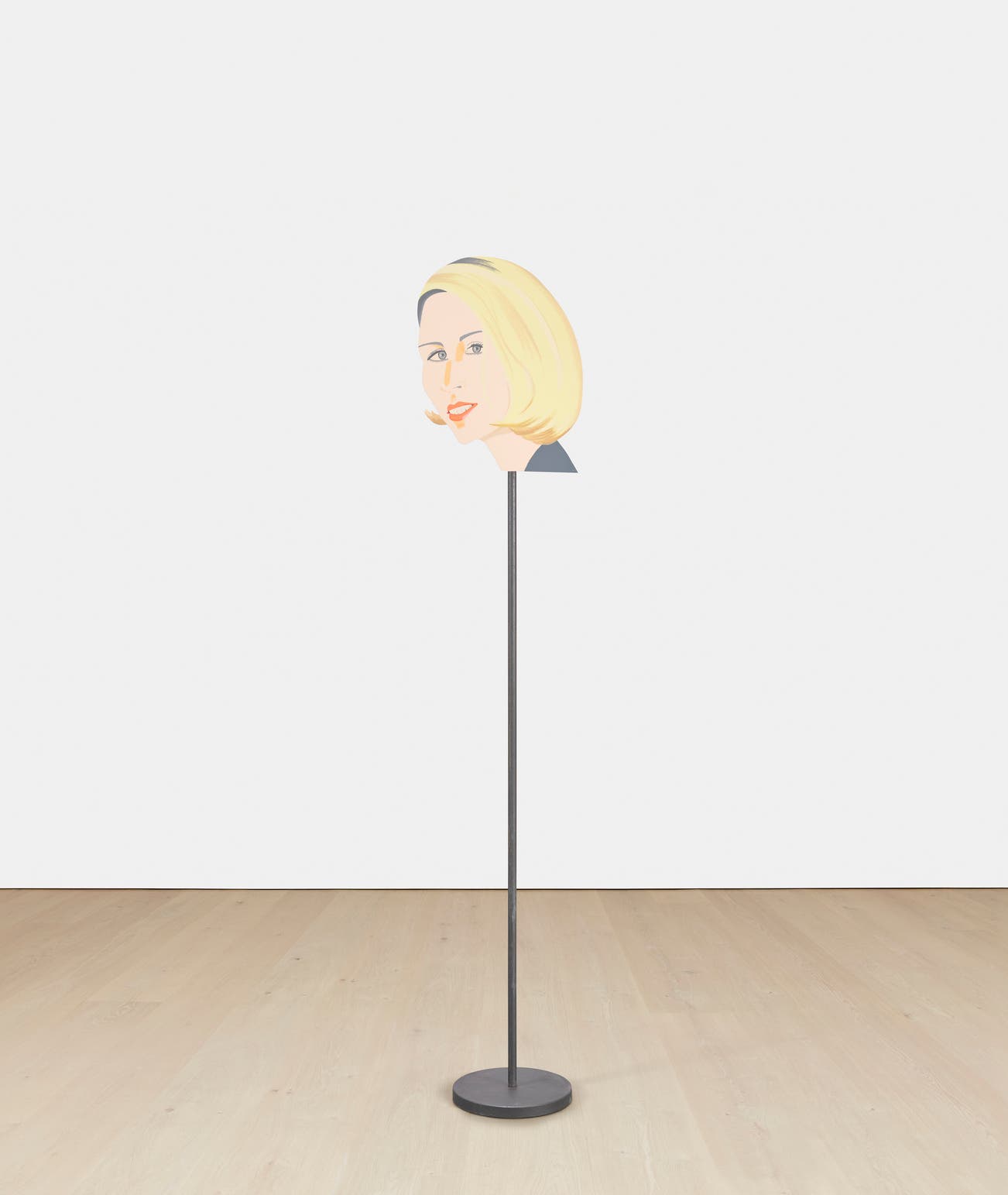Shaped aluminium multiple with screenprint in colours on both sides, with a bronze stand and base.