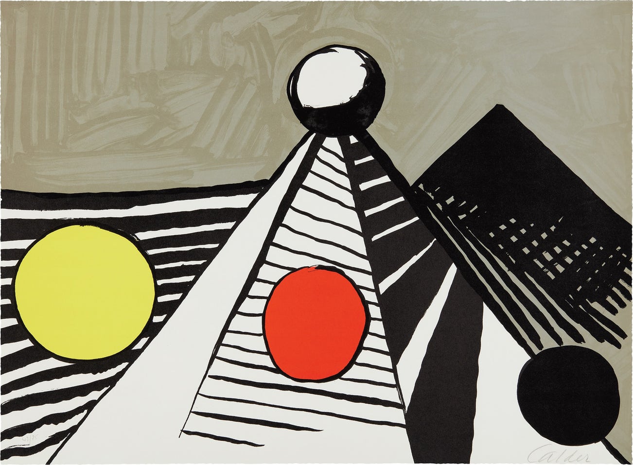 American | B. 1898 D. 1976Alexander Calder worked as an abstract sculptor and has been commonly referred to as the creator of the mobile. He employed industrious materials of wire and metal and transformed them into delicate geometric shapes that respond to the wind or float in air. Born into a family of sculptors, Calder created art from childhood and moved to Paris in 1926, where he became a pioneer of the international avant-garde. In addition to his mobiles, Calder produced an array of public constructions worldwide as well as drawings and paintings that feature the same brand of abstraction. Calder was born in Lawnton, Pennsylvania.