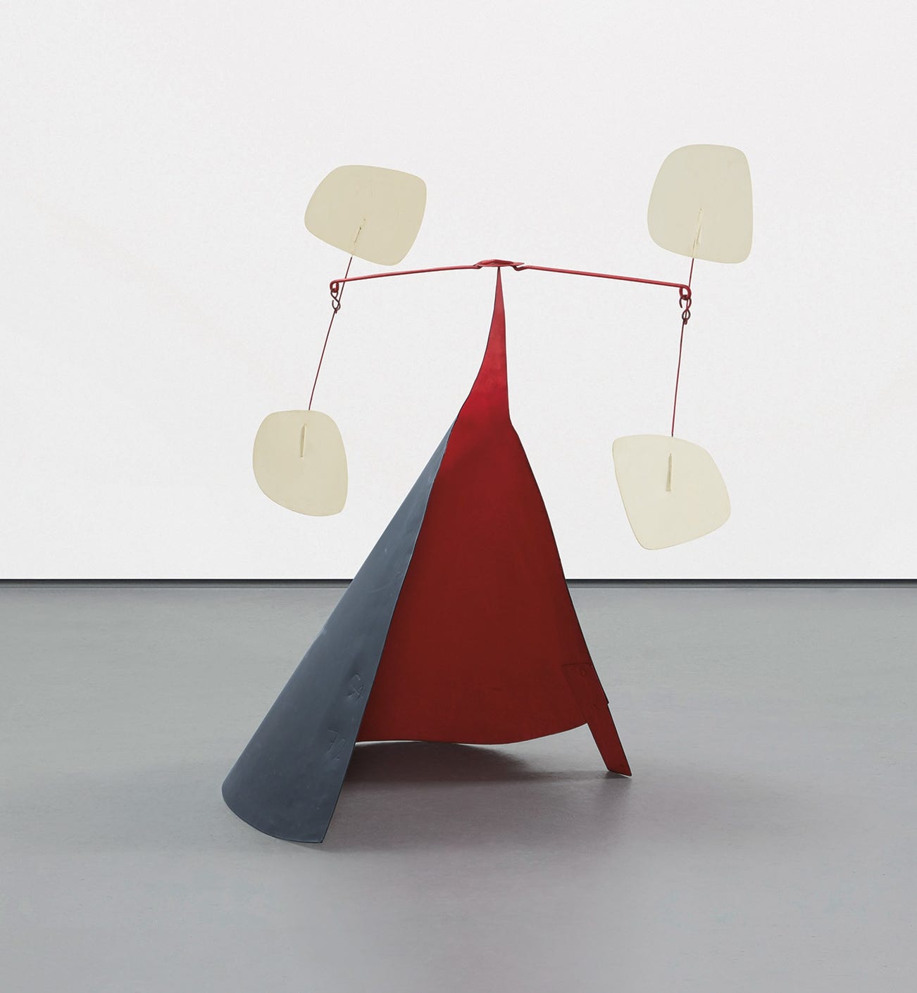 “Just as one can compose colors, or forms,” Calder wrote in 1933, “so one can compose motions” (Alexander Calder, 1933, quoted in Jed Pearl, Calder, The Conquest of Time, New York, 2017, p. 507). It was in 1930 that Calder made the radical transition from his circus-themed wire figures to abstract constructions, which would set in motion his kinetic revolution of sculpture. Calder developed his artistic sensibility in the heady climate of 1920s Paris, where he became a fully-fledged member of the European art world. It was there that he encountered the work of Joan Miró and Piet Mondrian. The sight of seeing Mondrian’s colored shapes floating unframed on the wall inspired Calder to begin his own experiments of abstraction, but it was perhaps above all his deep friendship and dialogue with Miró that helped him elaborate and develop his trailblazing ideas concerning balance and motion over the years.